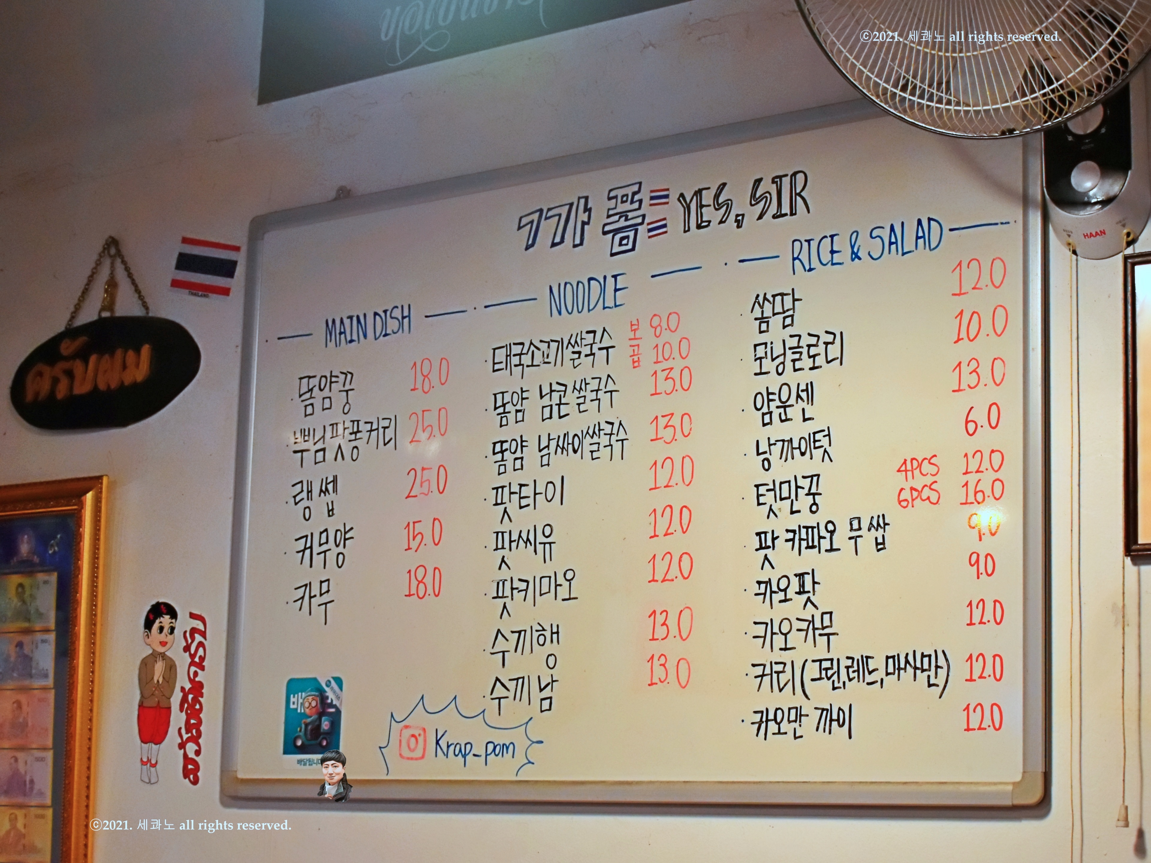 아마도 똠양꿍과 쌀국수가 메인인 듯싶은데