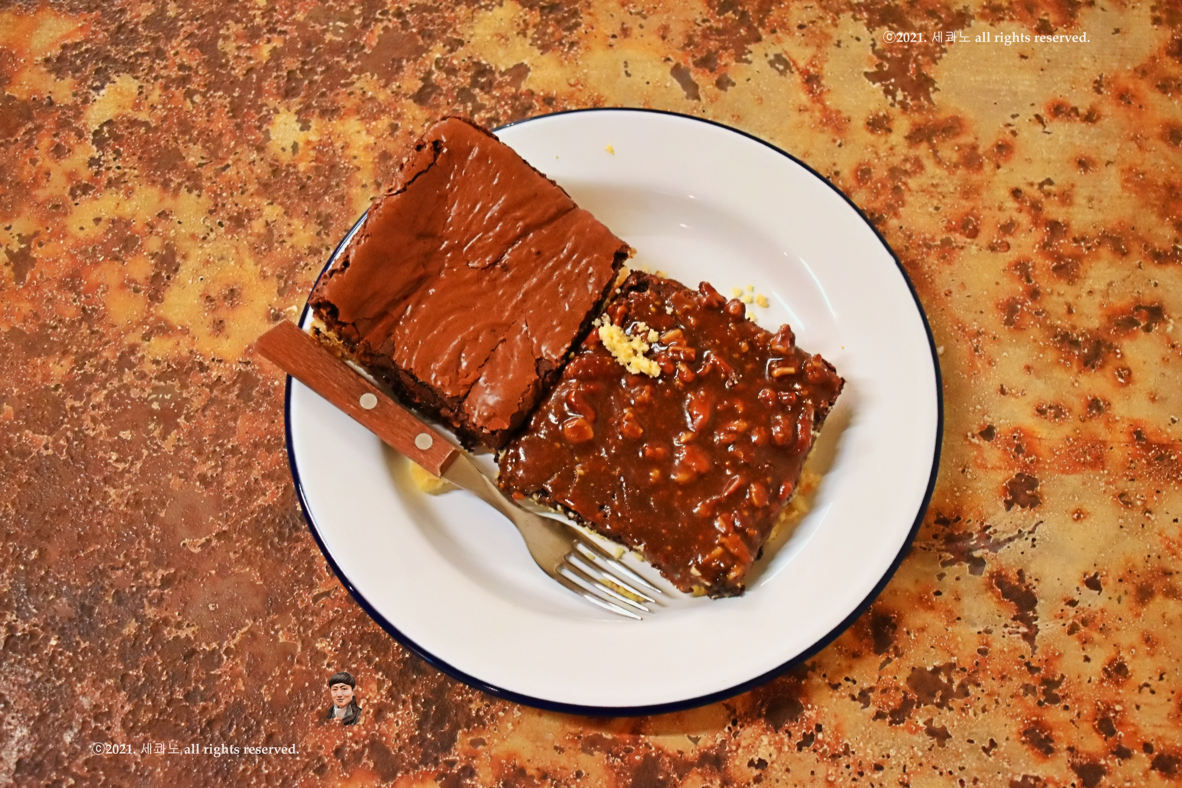 좌측이 클래식 쿠키 브라우니, 우측이 피칸 쿠라우니로