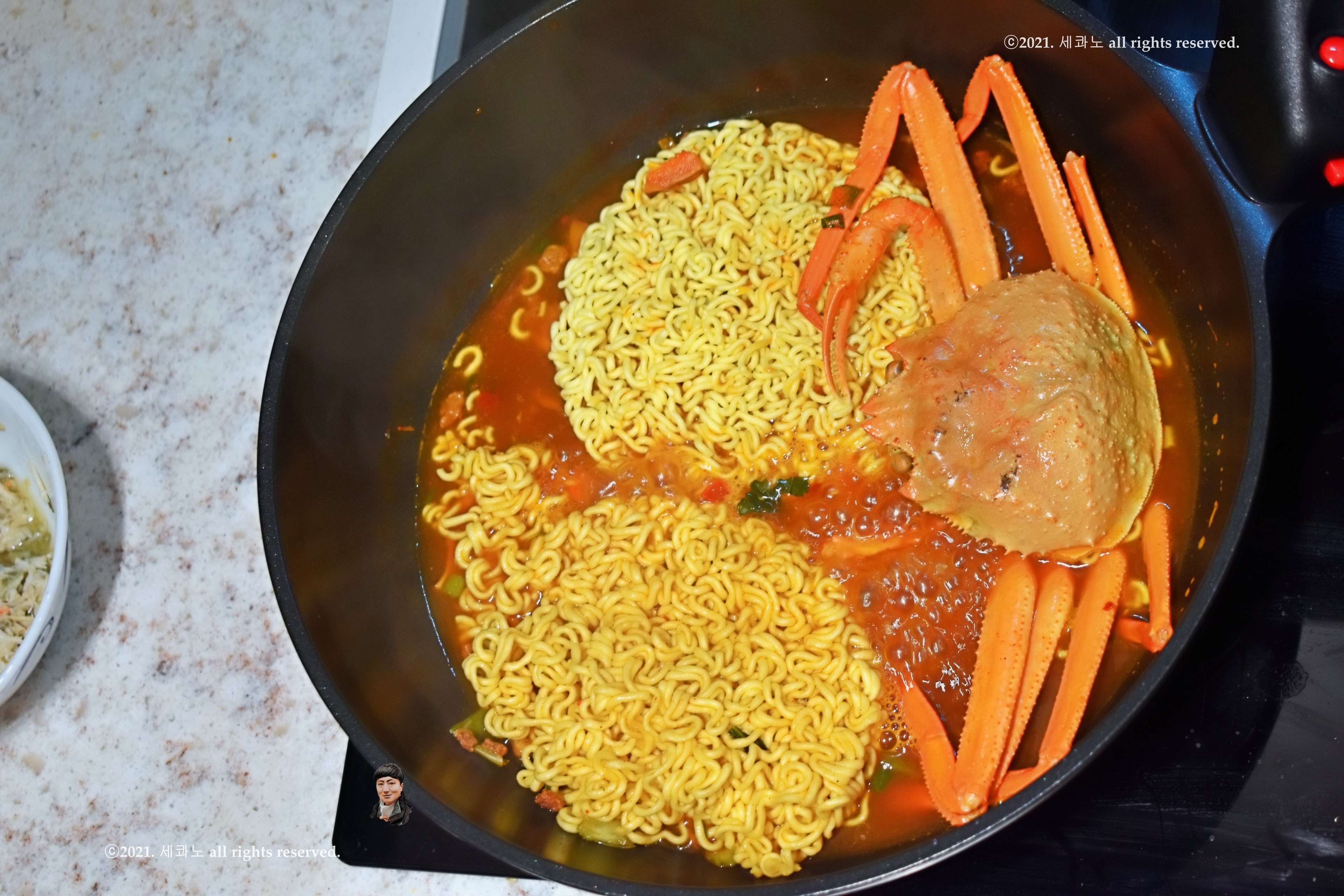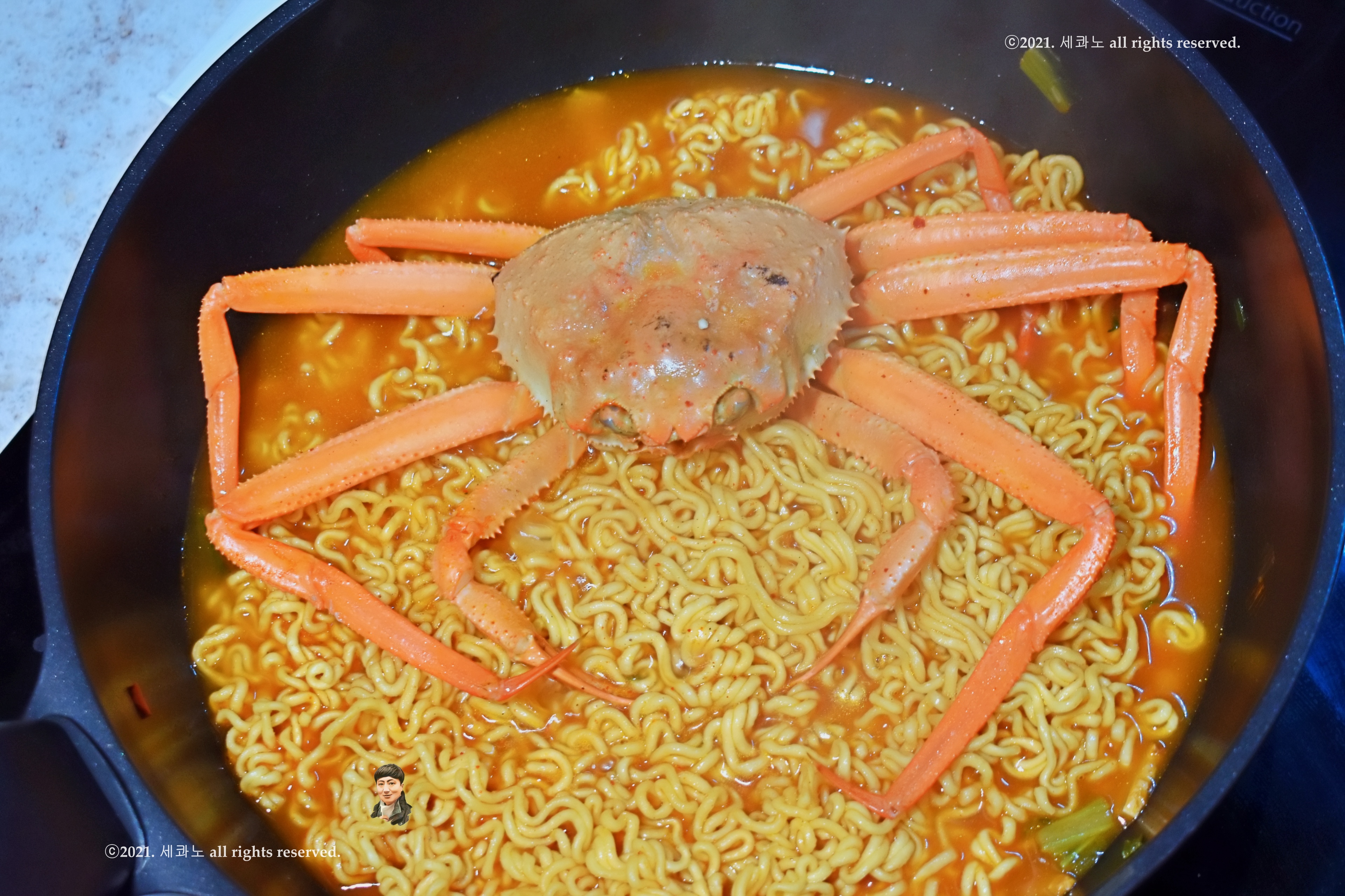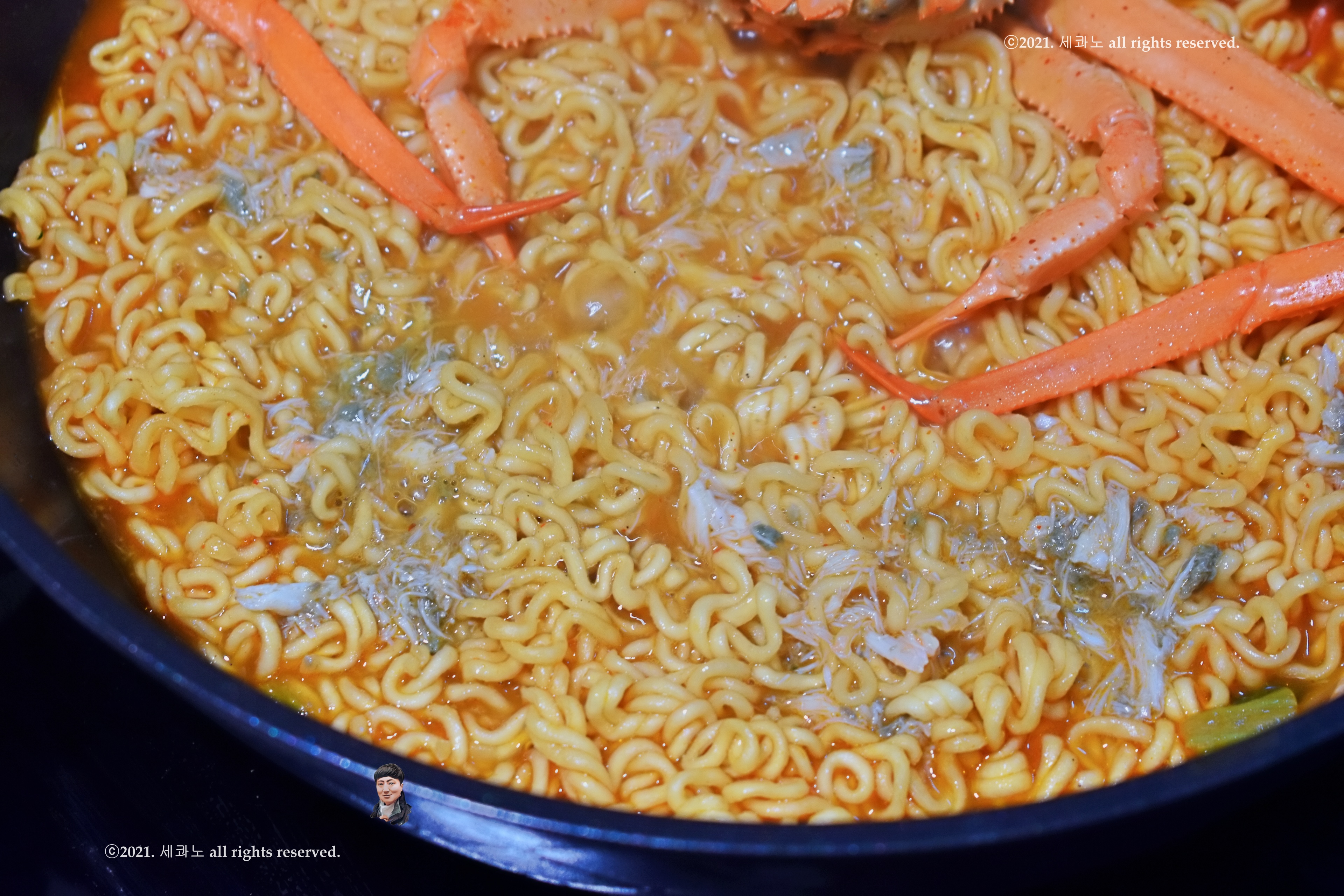 홍게 요리, 홍게 라면의 육수용으로 사용하였다.