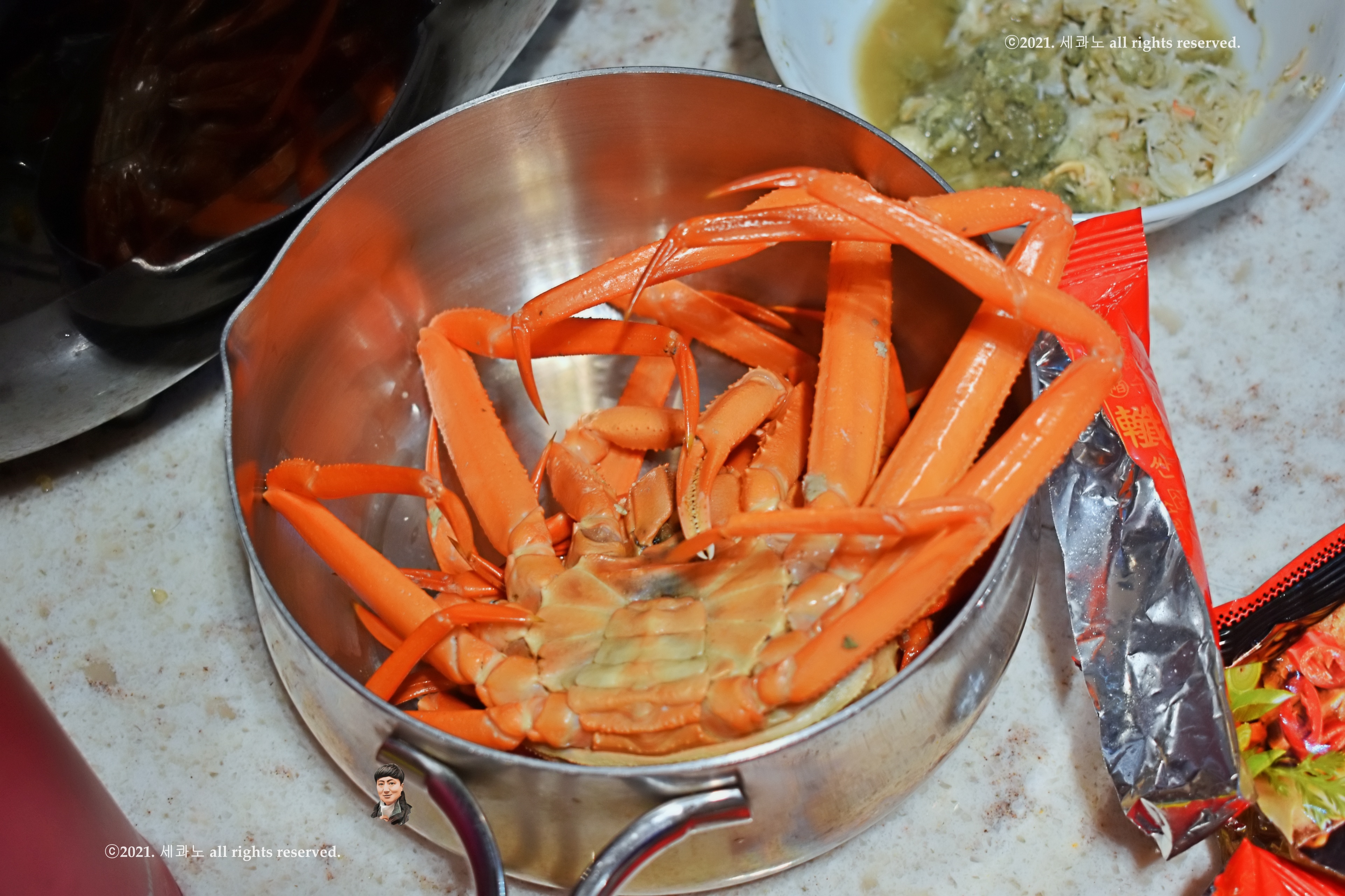 홍게찜 3마리, 홍게라면 1마리 사용하였다.