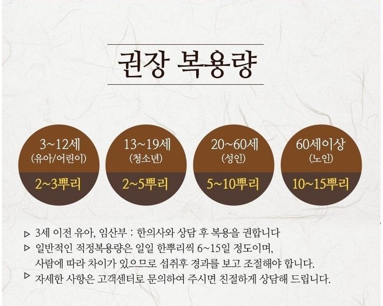 권장 복용량은 일반적인 성인의 경우 5~10뿌리라고 한다.