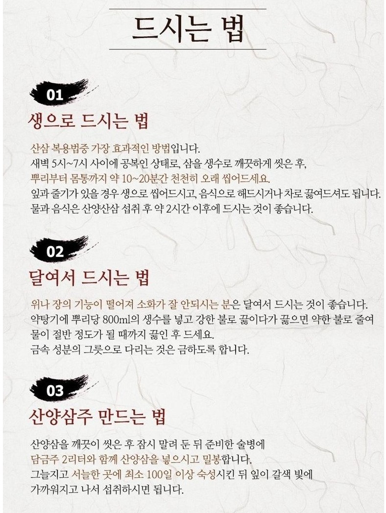 달여서 먹거나 산양삼주 만들어서 먹거나
