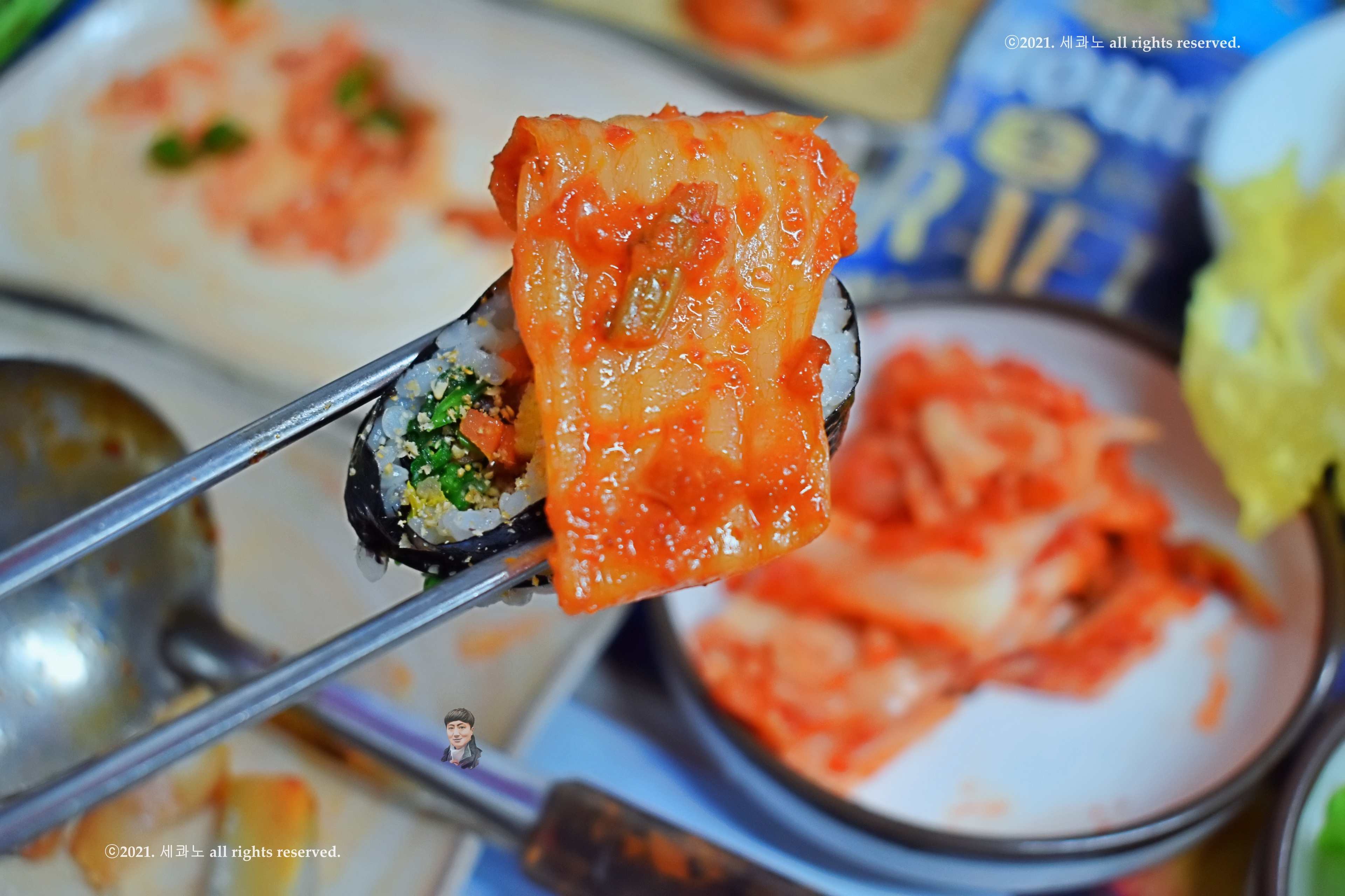 두부김치에서 남은 김치를 올려서 먹어주기도 했다.