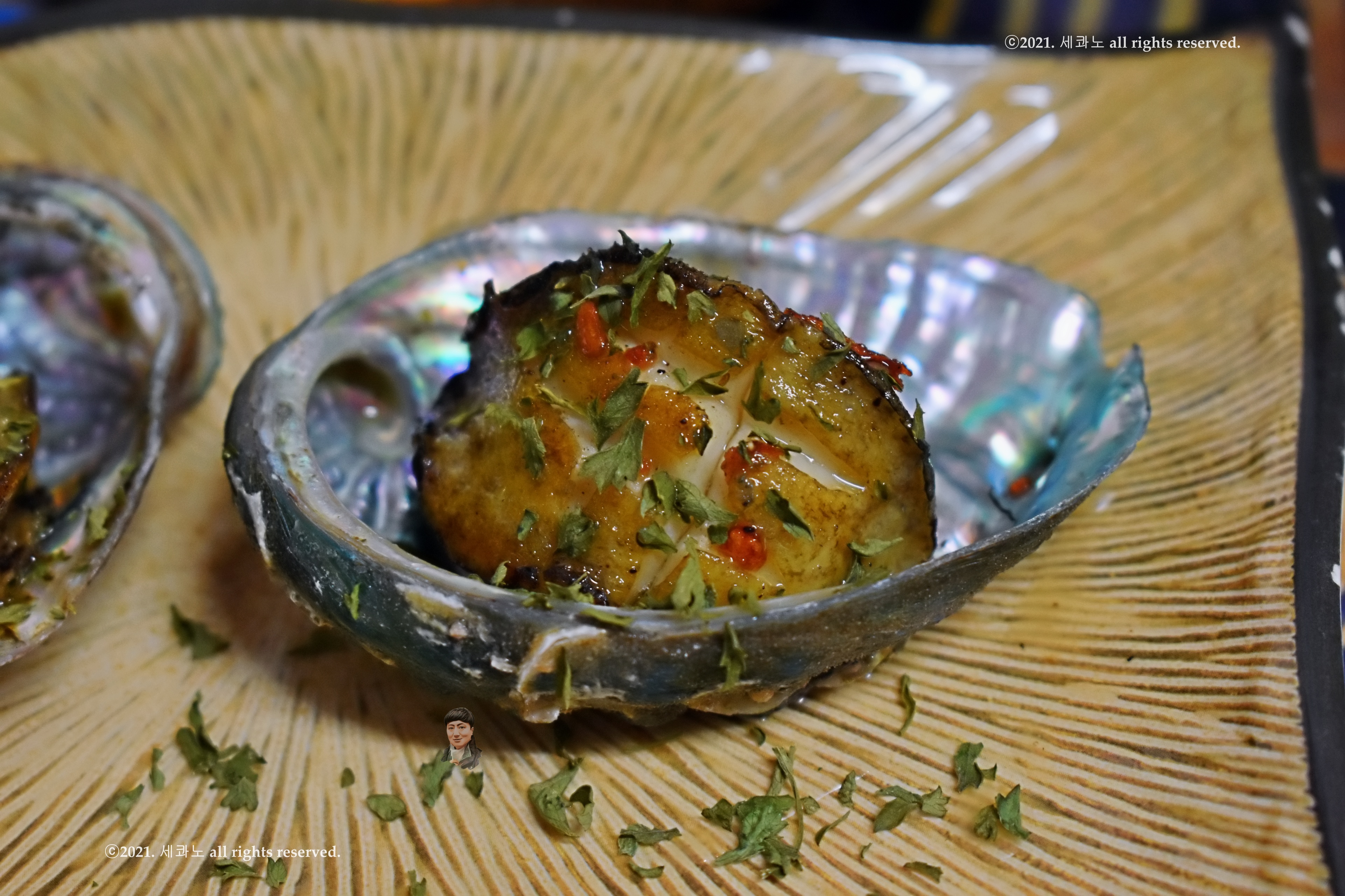 전복 구이. 버터에 구워내었고