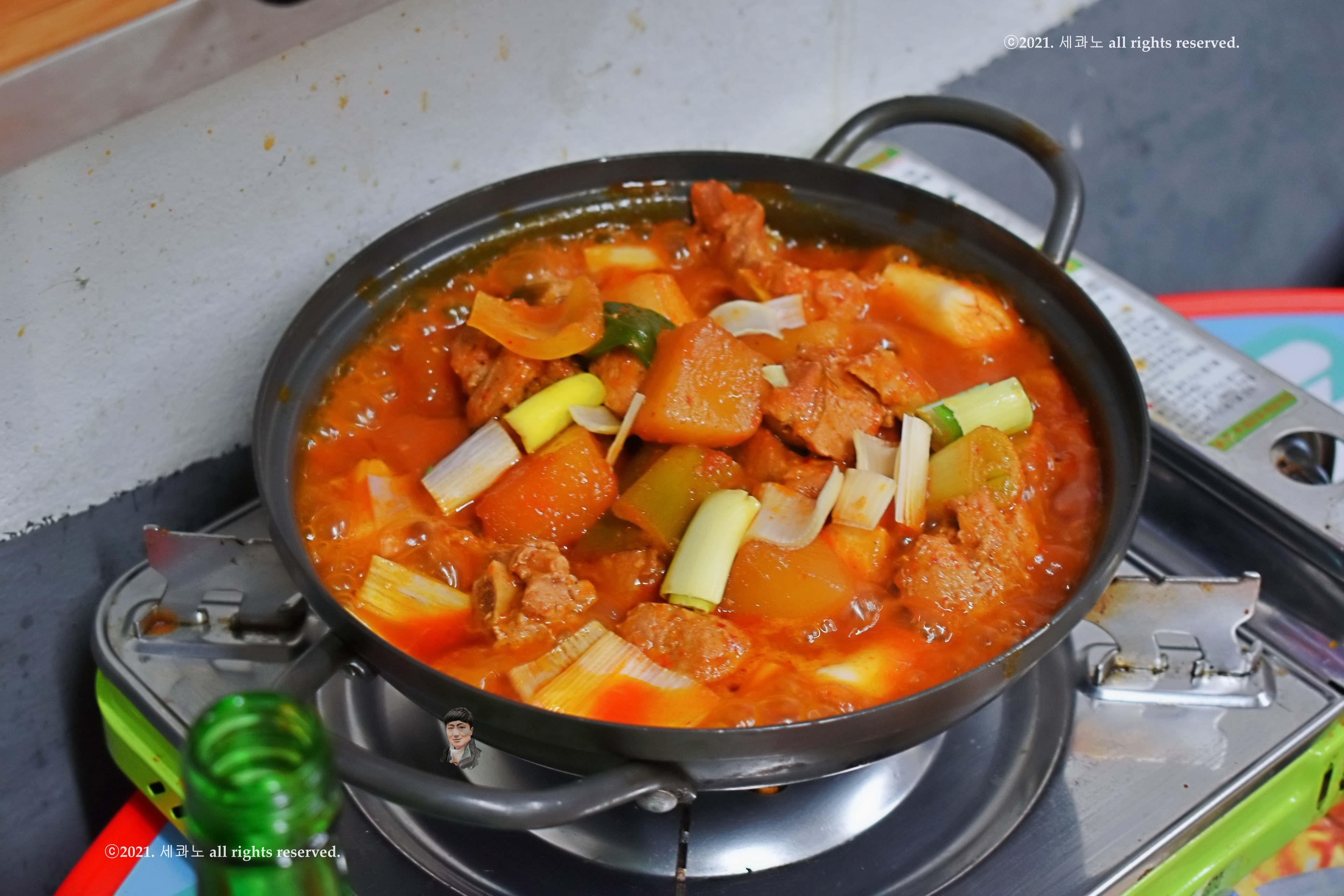 양념이나 다른 재료는 닭볶음탕과 크게 다르지 않게 하였고