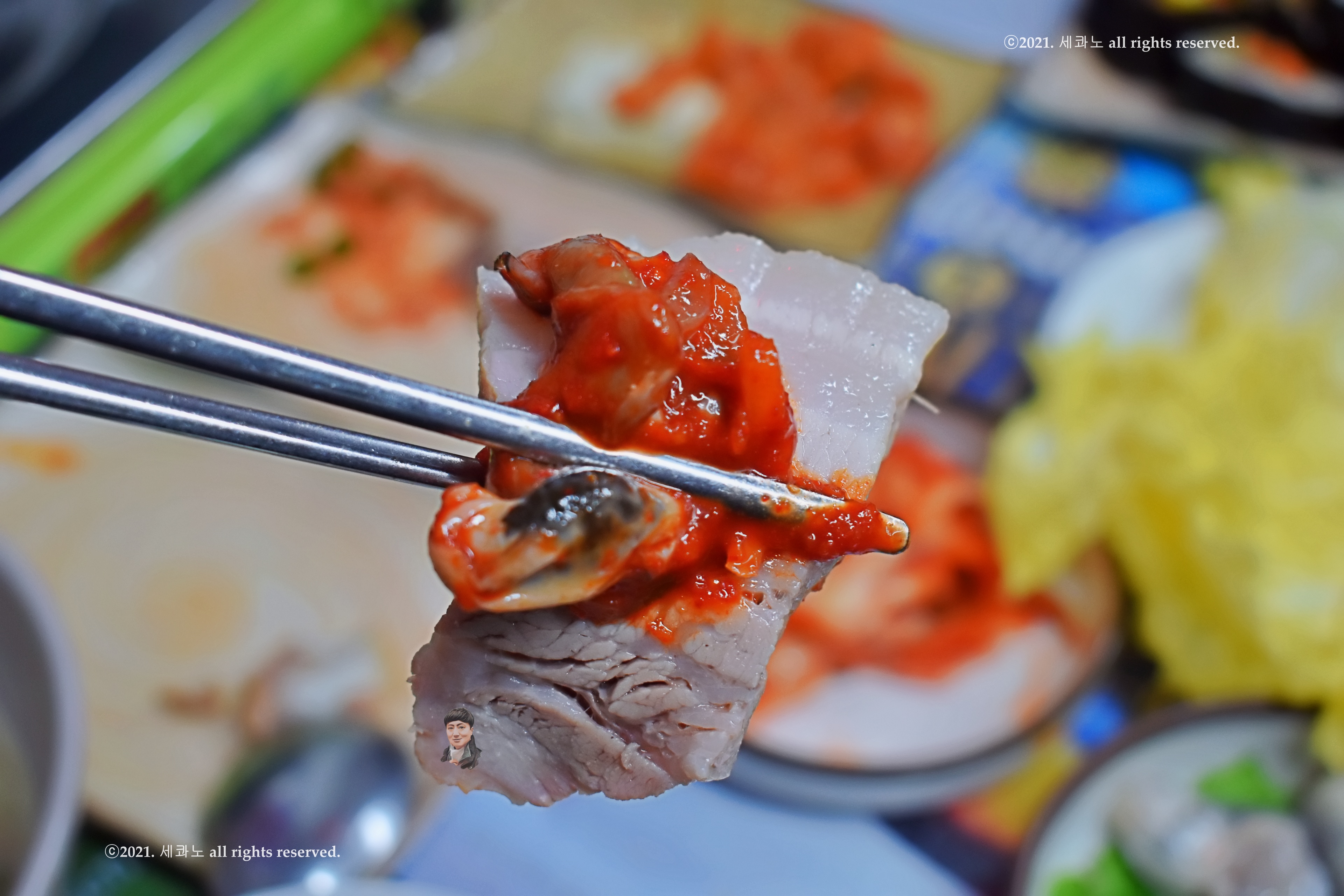 보쌈을 편육에 나온 양념 새우젓과 같이 먹는 것과 같이 말야.
