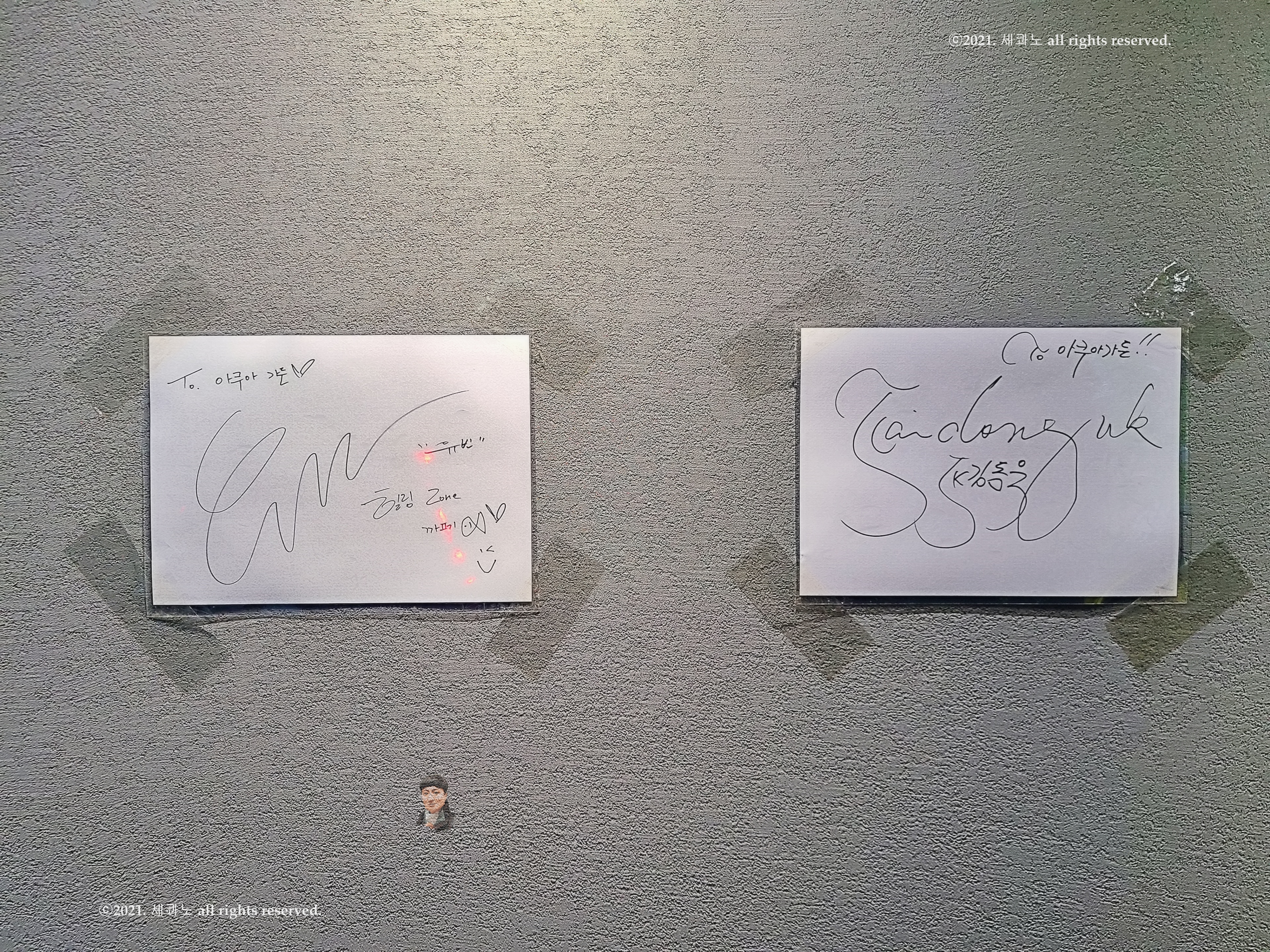 세콰노가 방문한 양재점에 붙어 있던 연예인 사인