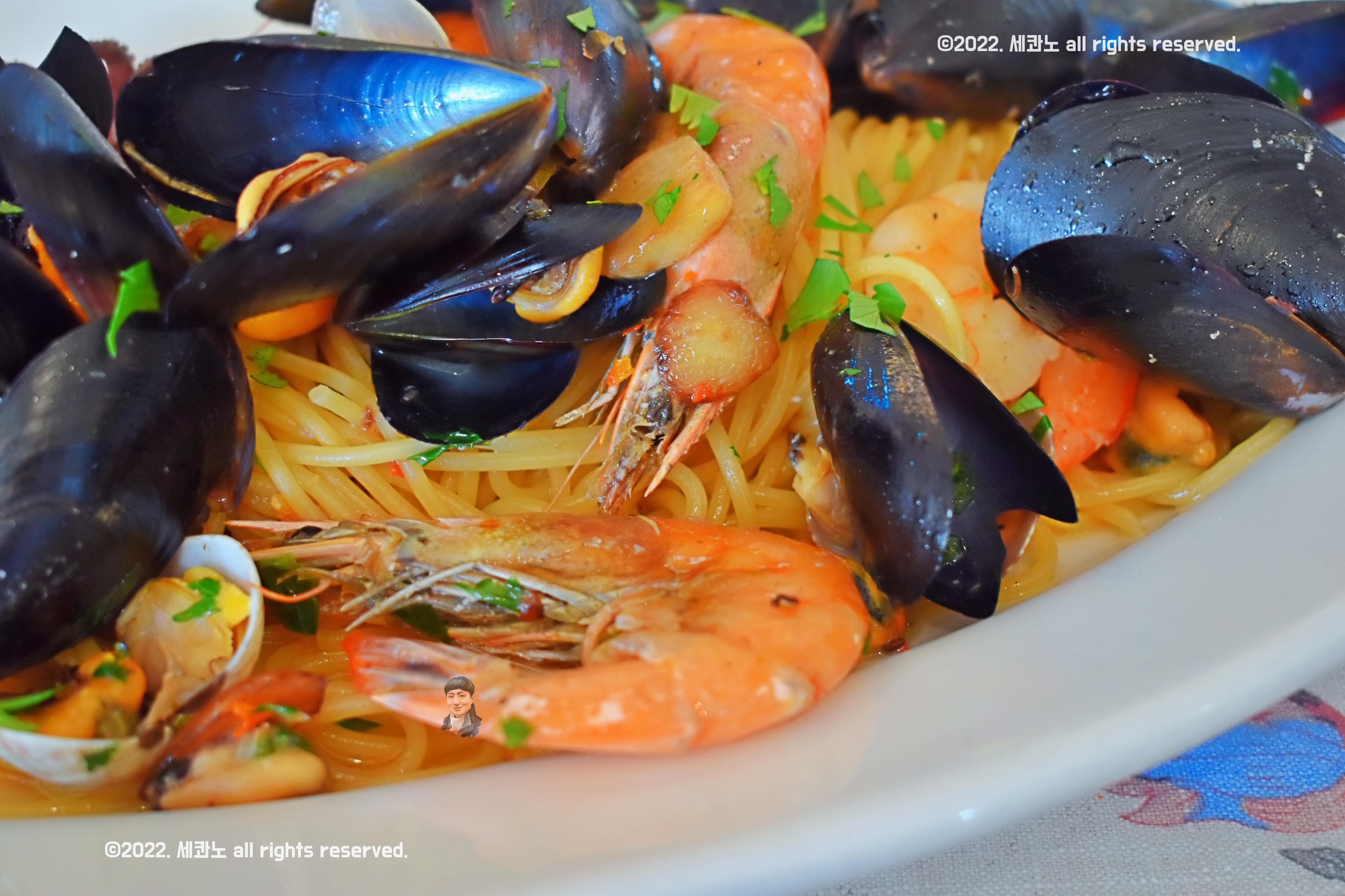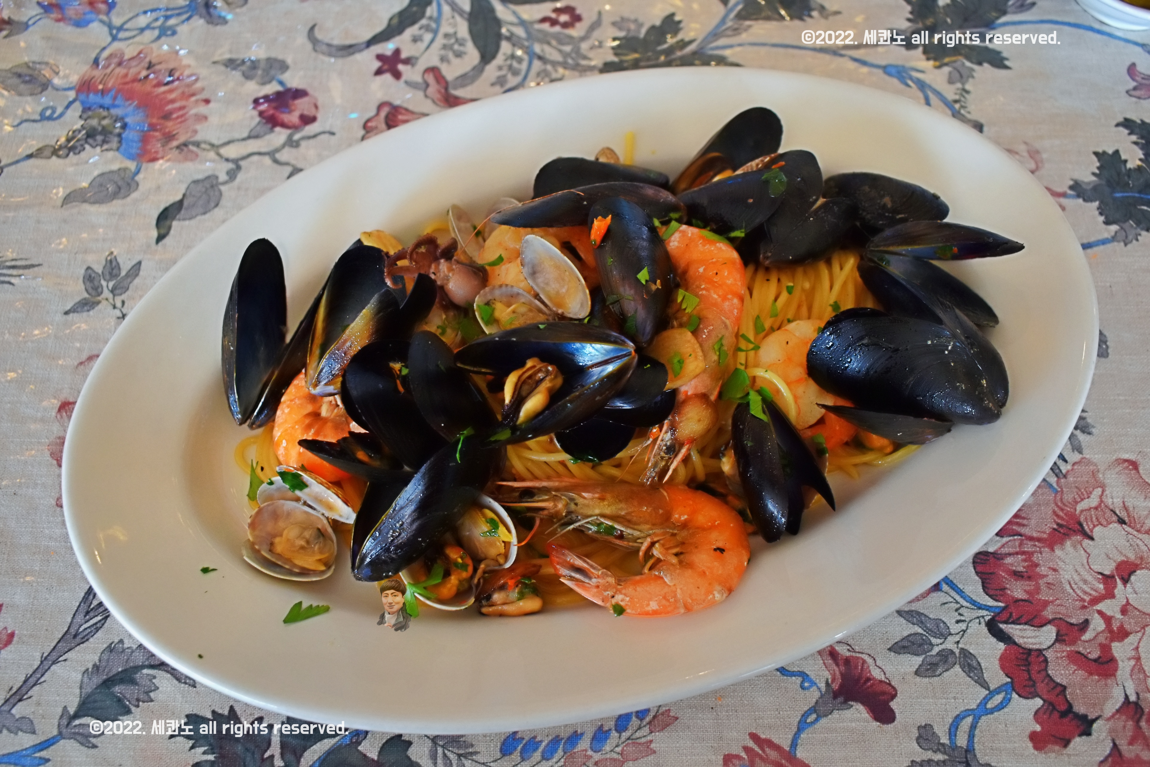 각종 해산물로 맛을 낸 이탈리아 정통 해산물 오일 파스타