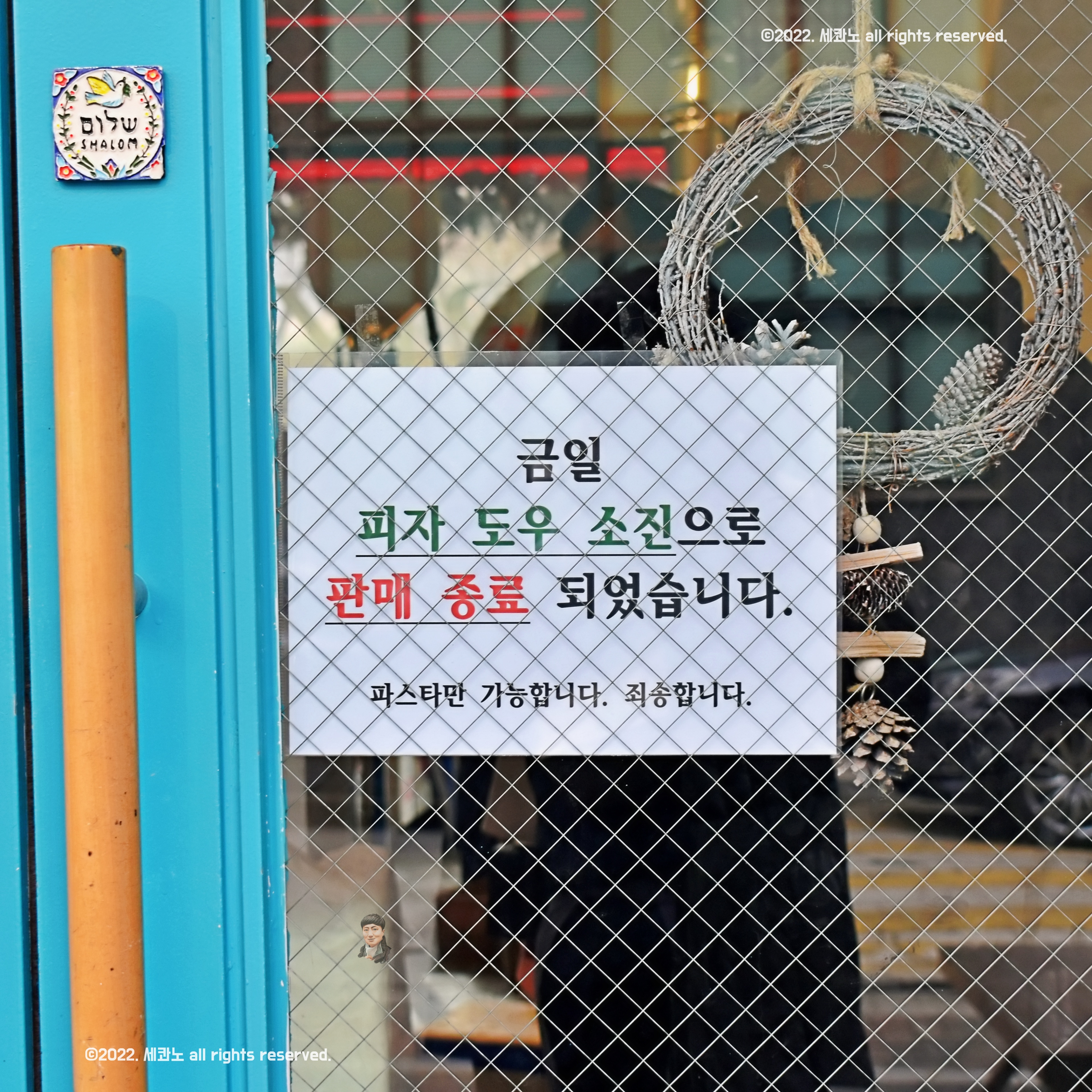 용인 화덕피자 판매 종료 안내가 문에 붙었다.