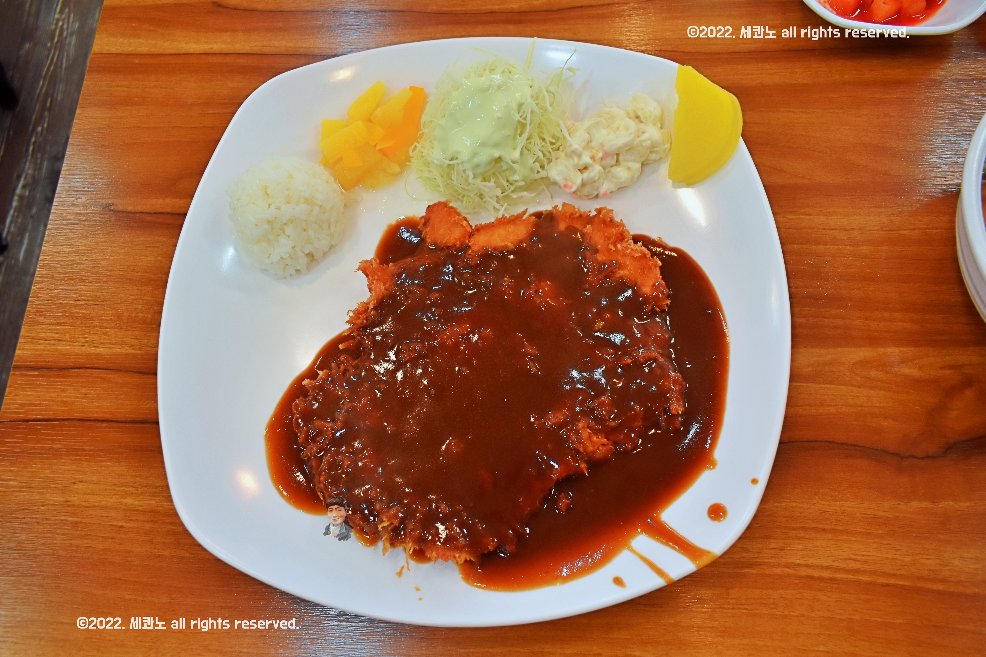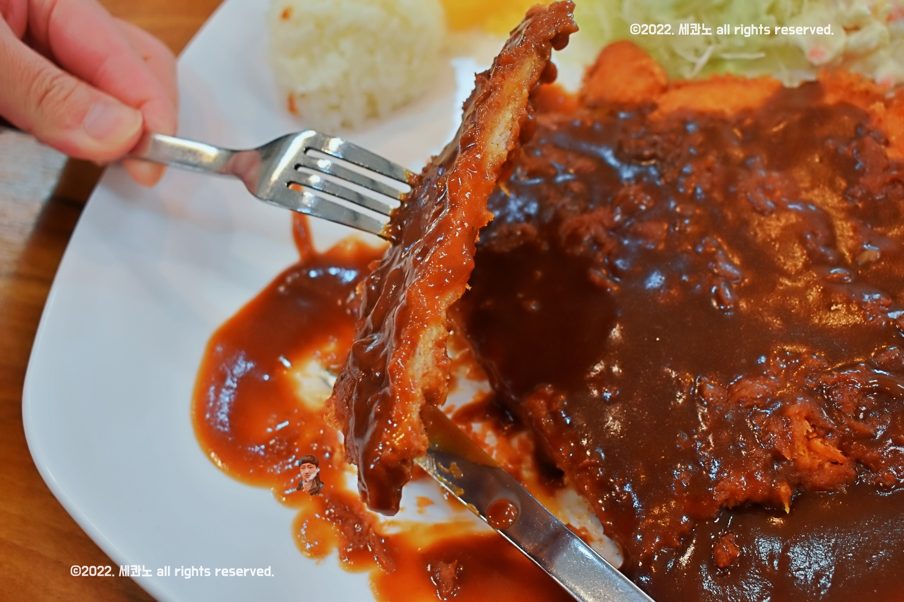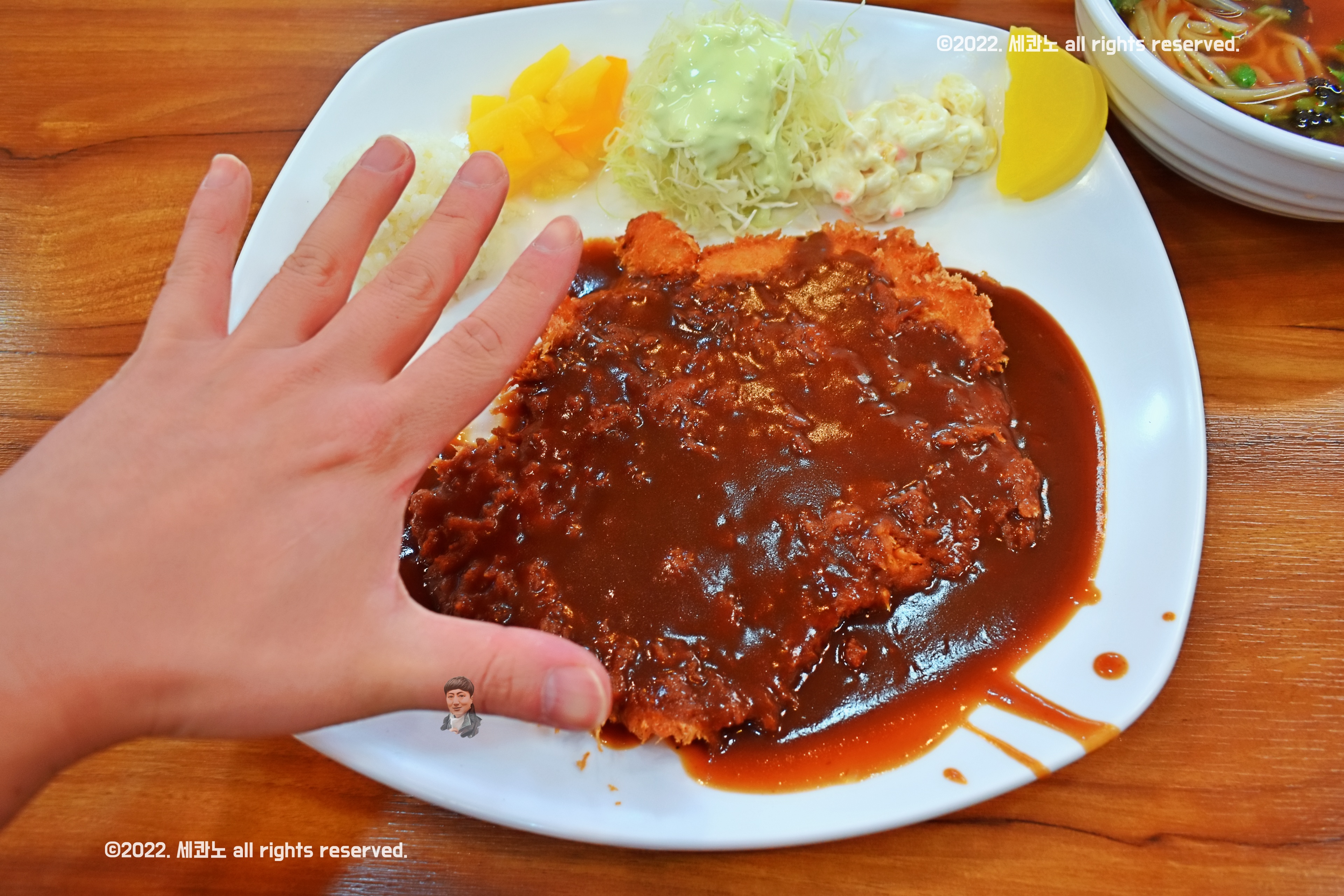성인 남자 손바닥 활짝 편 것과 비슷한 크기의 왕돈까스다.