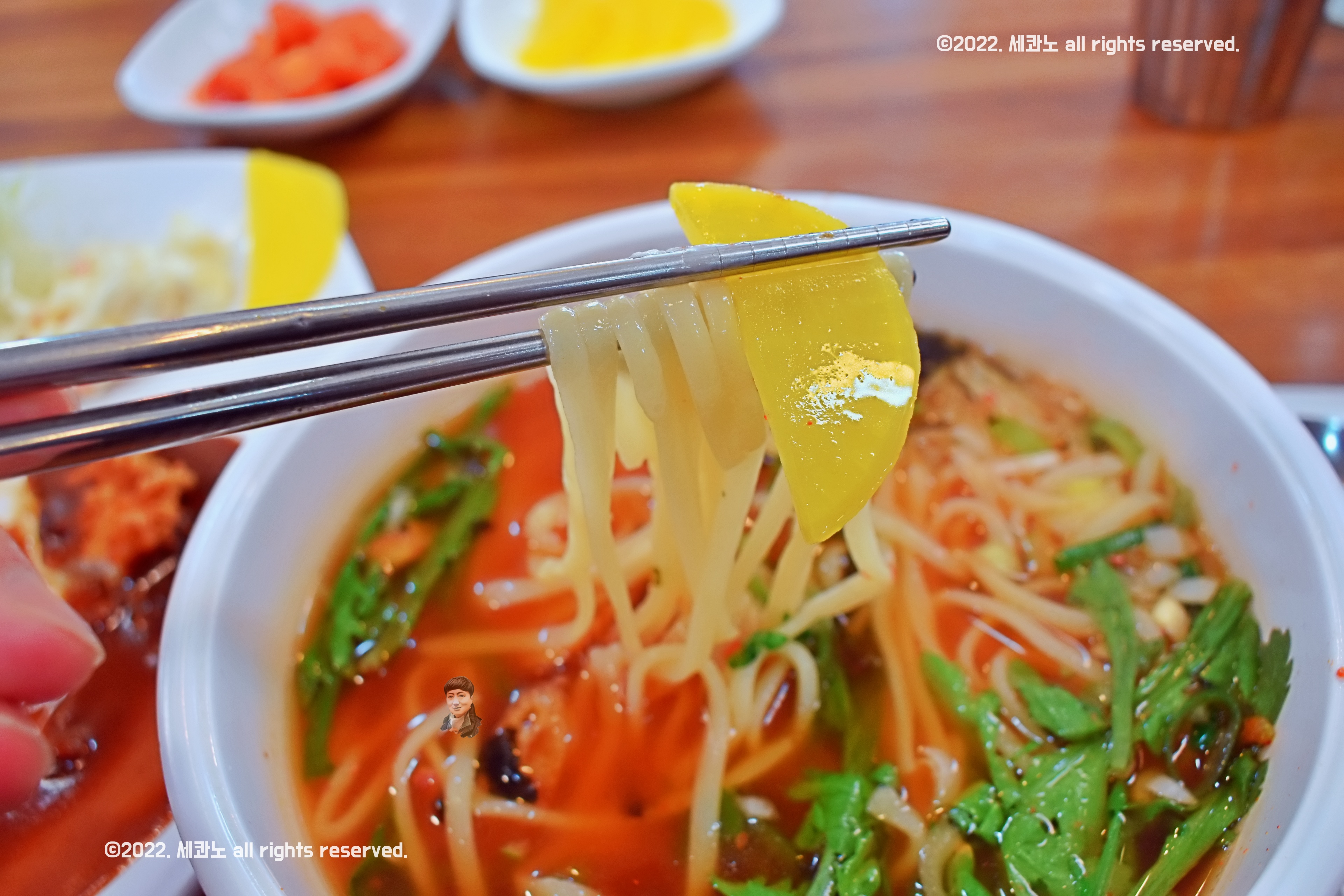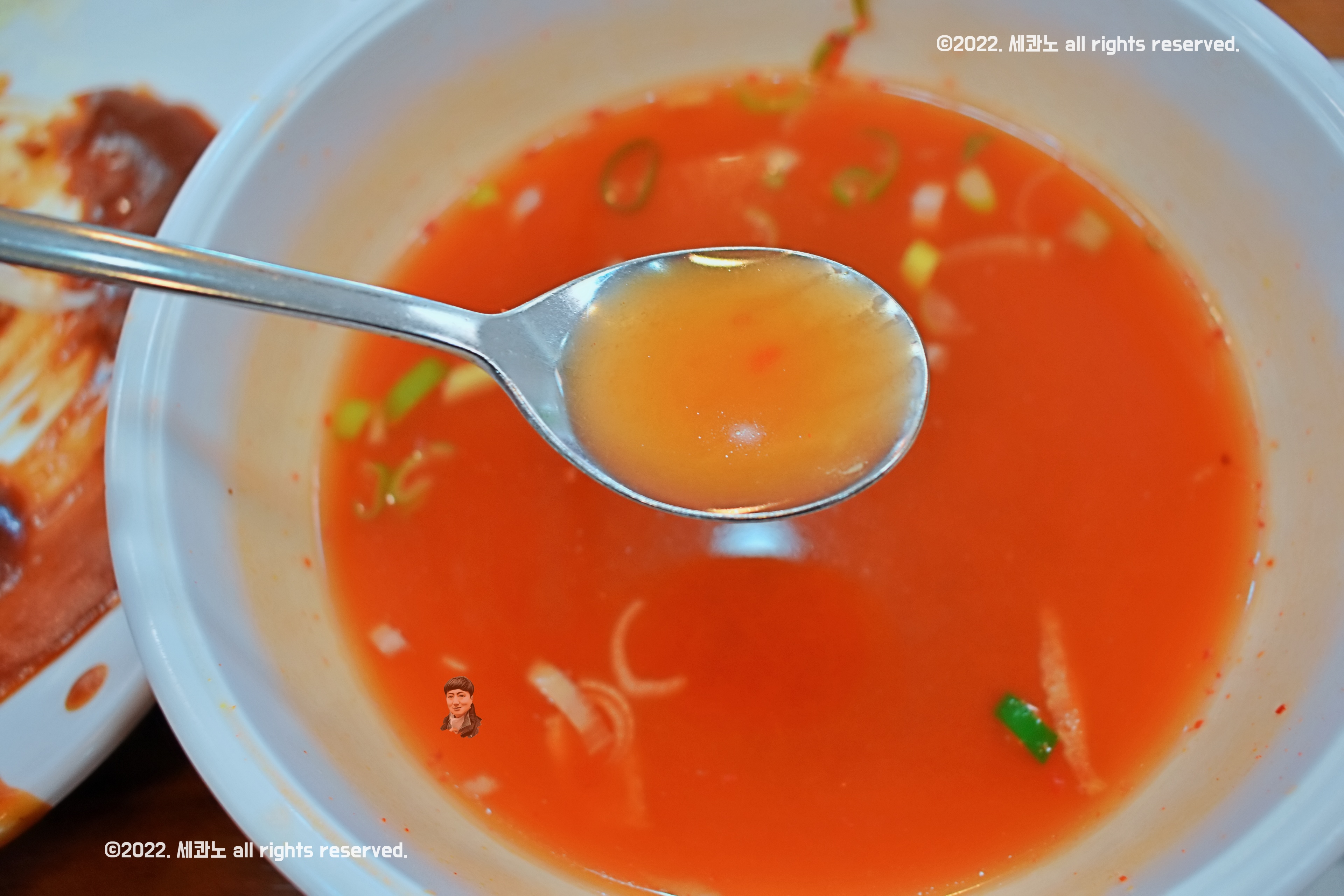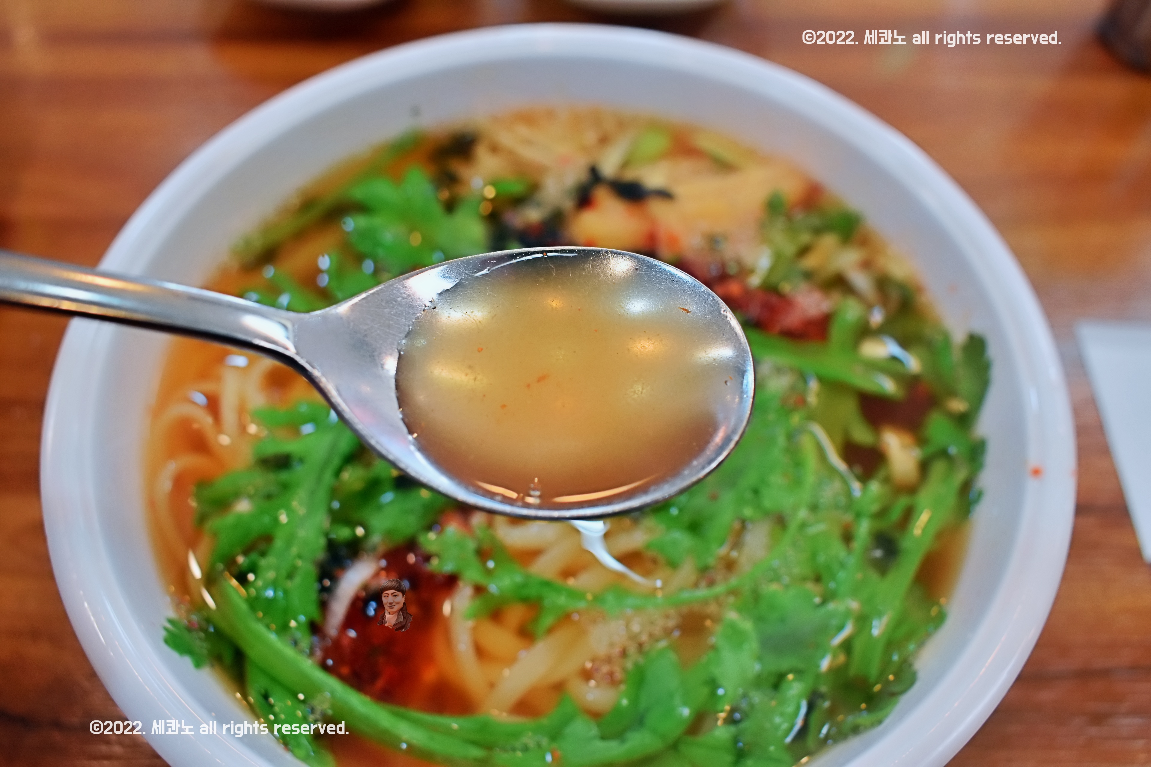 기본적으로 잔치국수와 비슷한 느낌의 순한맛 멸치 육수에