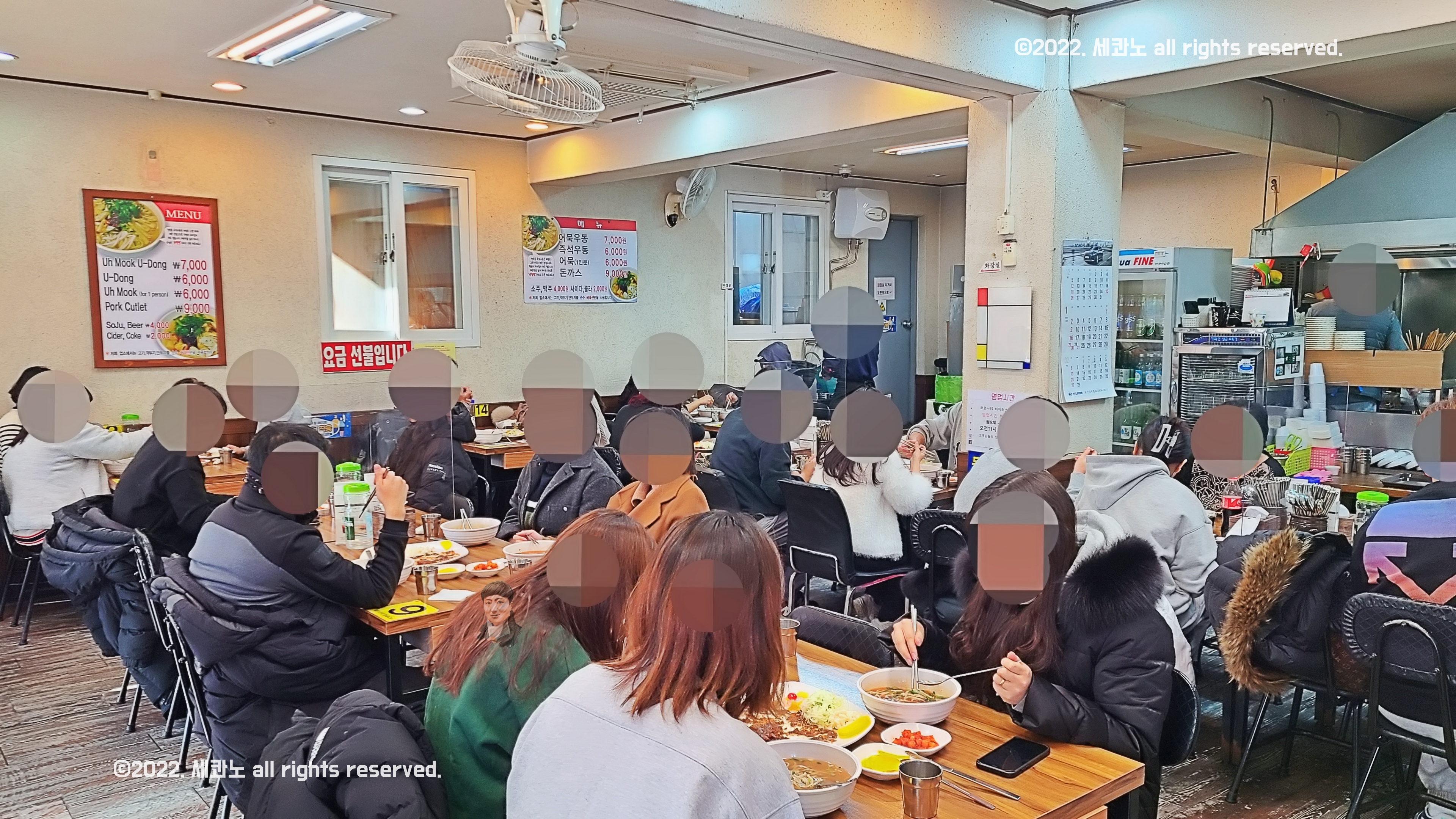 따끈하고 얼큰한 우동 국물을 흡입하며