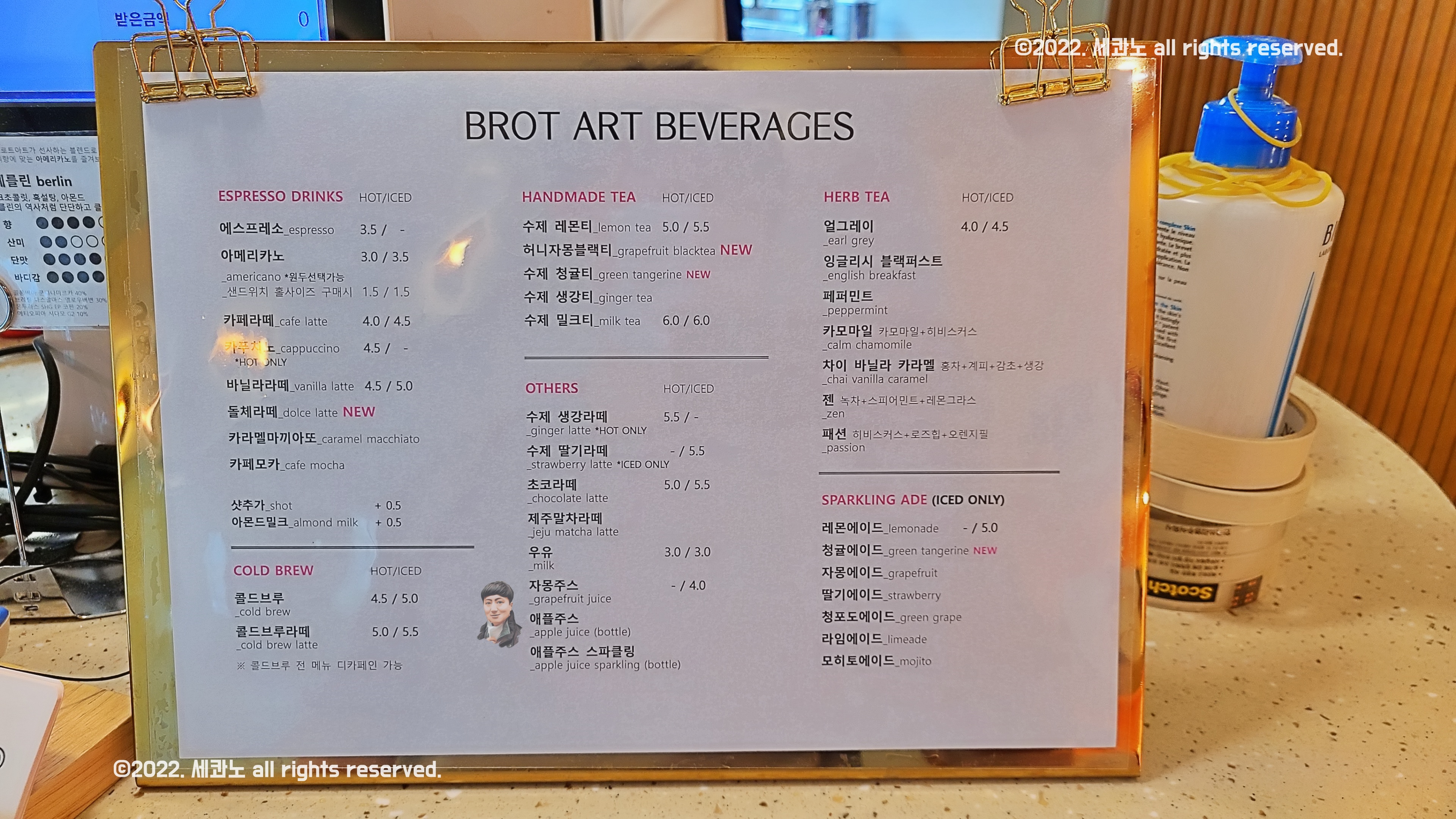 커피와 차 등의 음료 등의 메뉴판도 올려보고