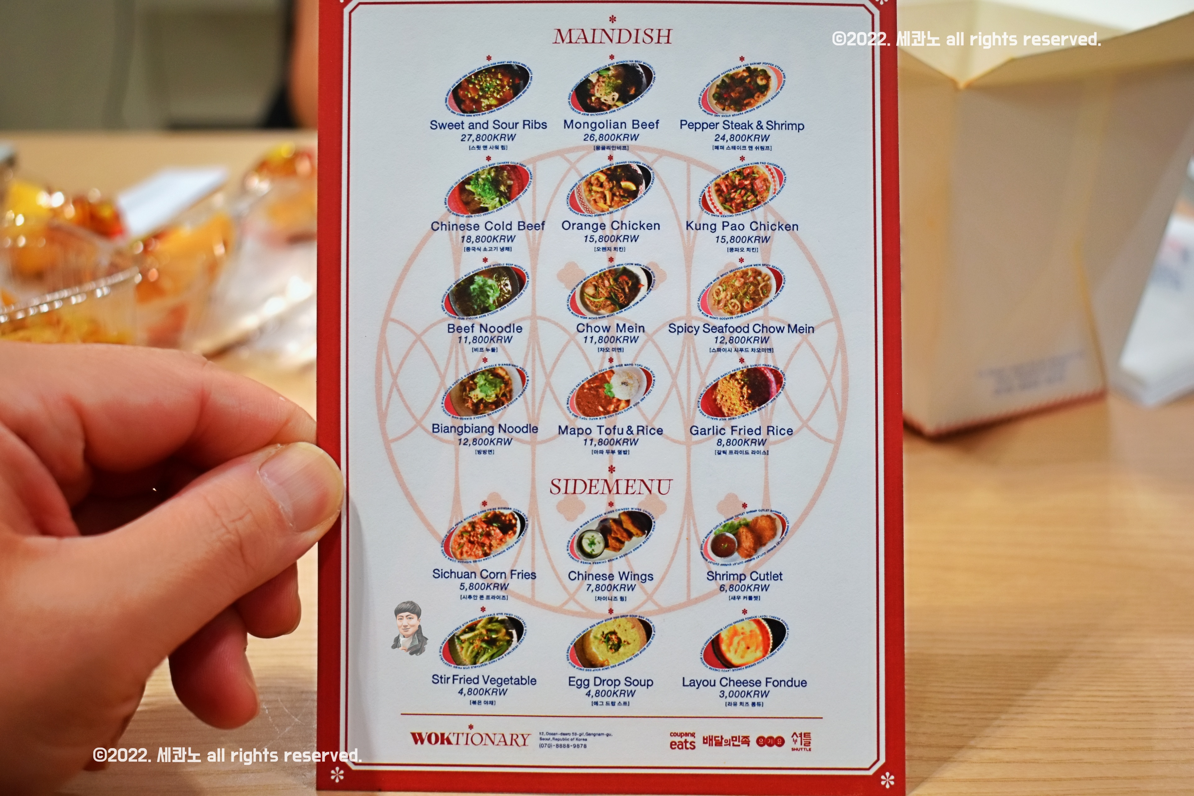 줄서는 식당 도산공원 미국식 중식당 웍셔너리 도산 메뉴판 및 가격