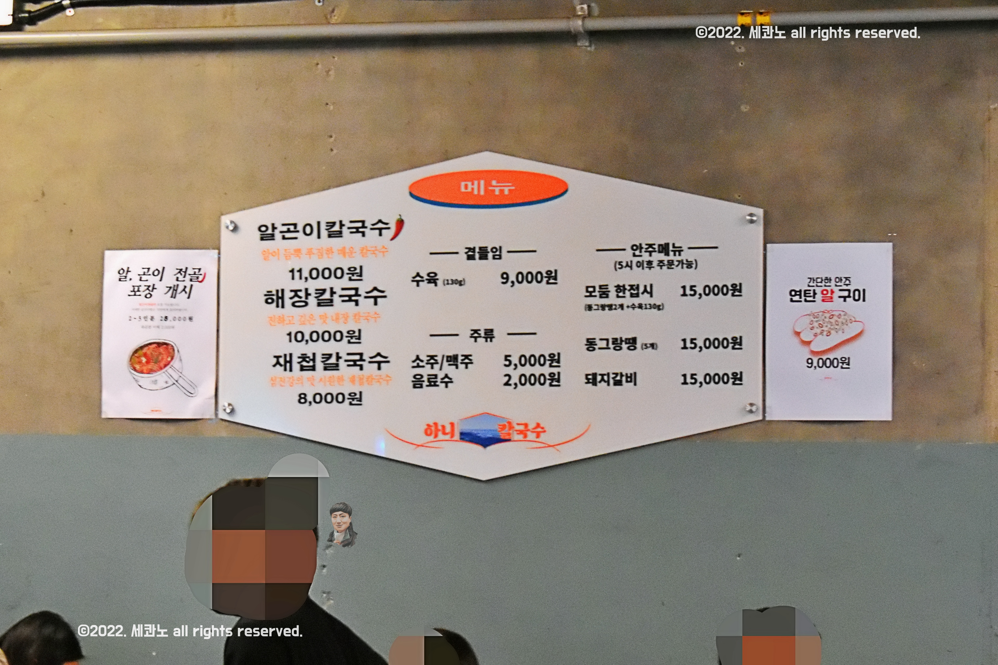신당동 하니칼국수 메뉴판, 가격