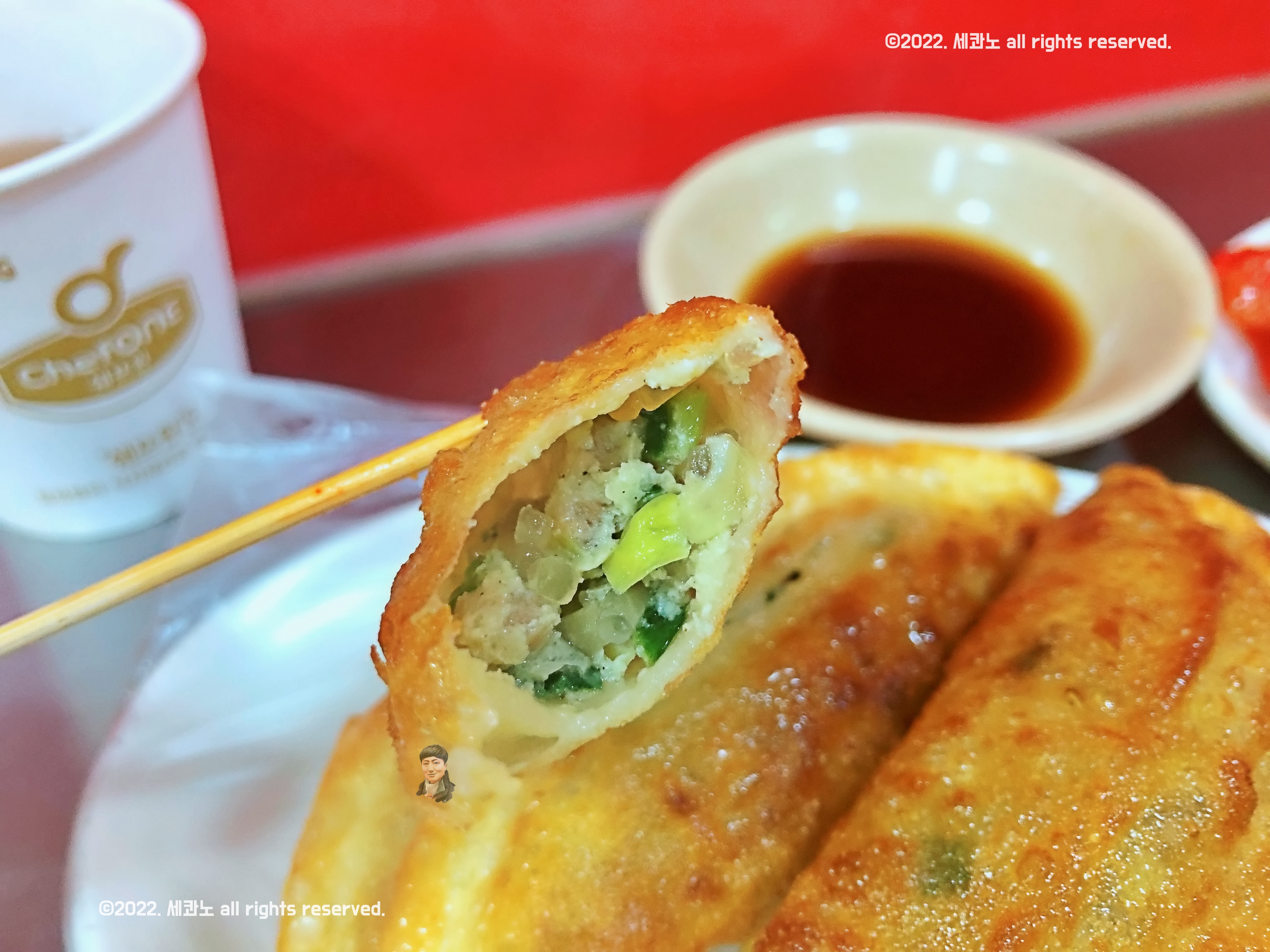 당면을 비롯한 만두소가 생각보다 꽤 들어가 있는 튀김만두였다.