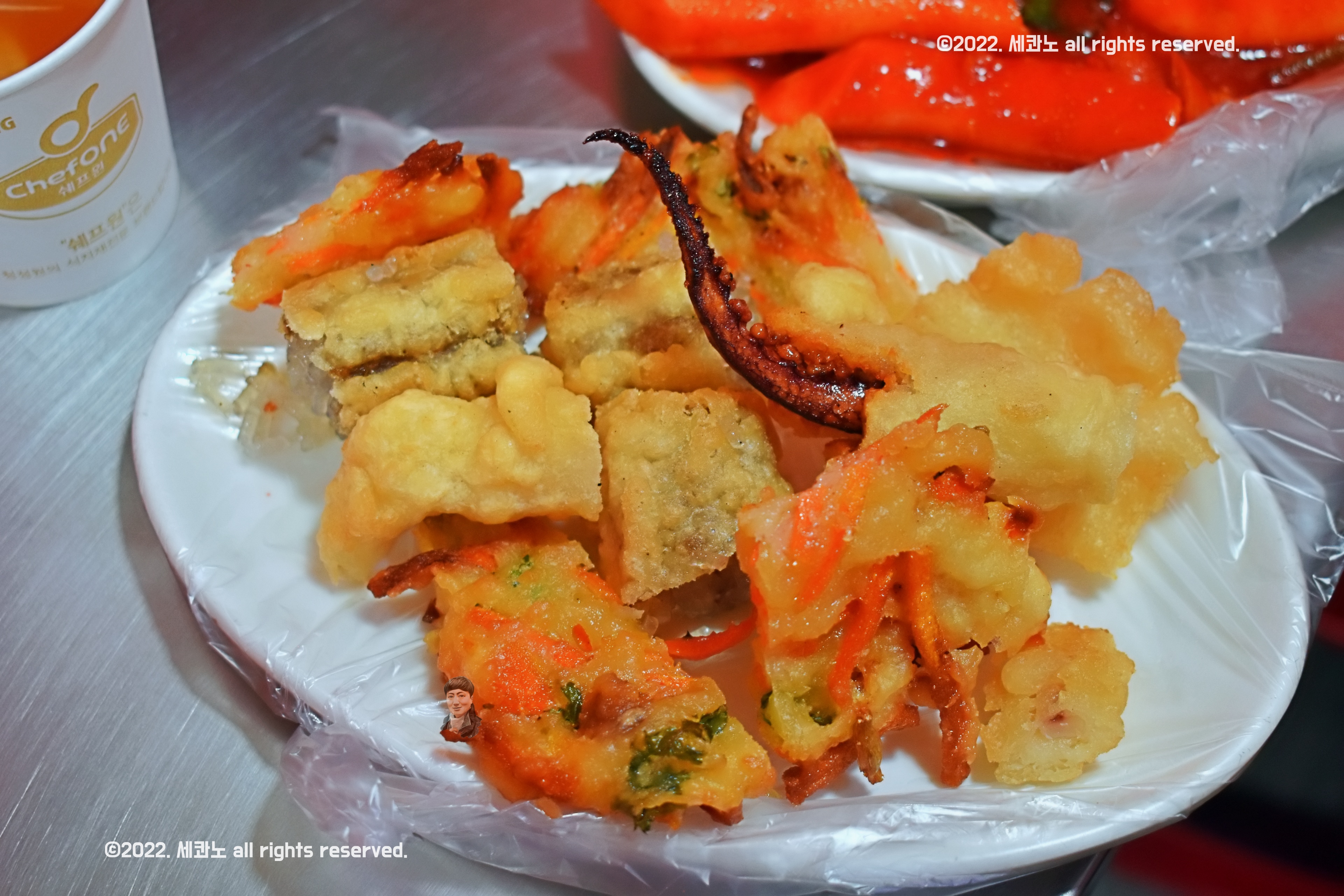 튀김에는 야채, 오징어, 김말이 3종류가 있다.