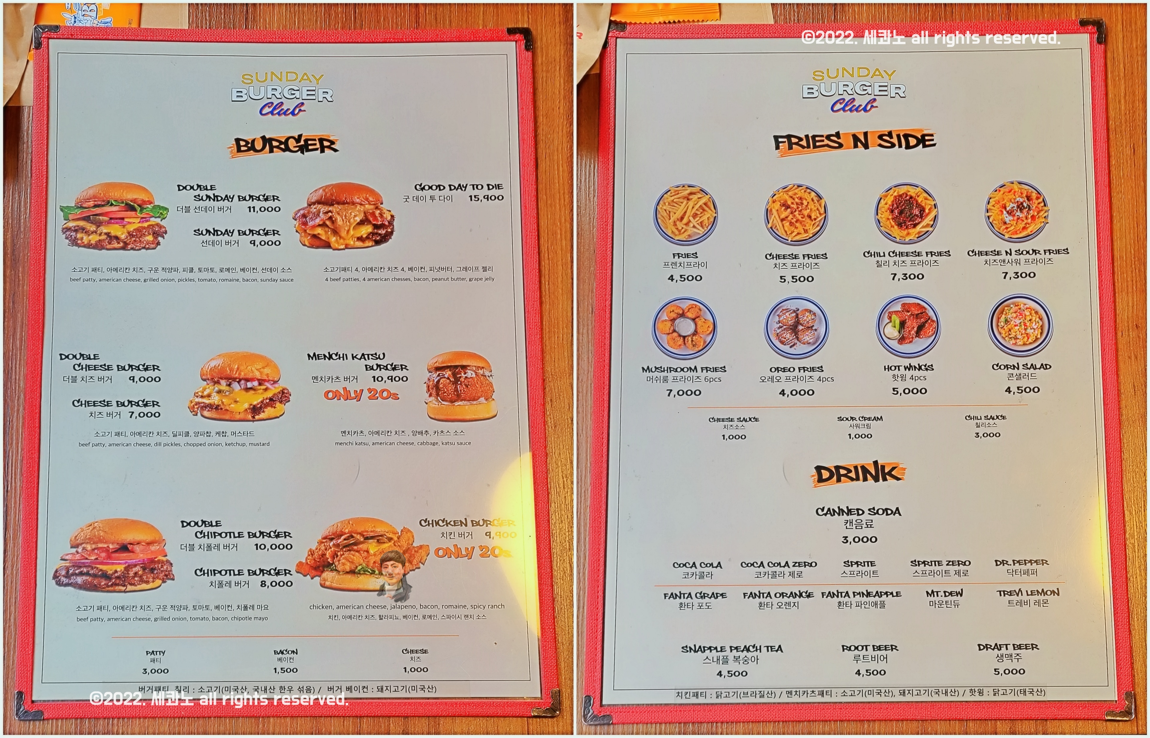 치폴레버거보다 1000원 더 비싼 썬데이버거