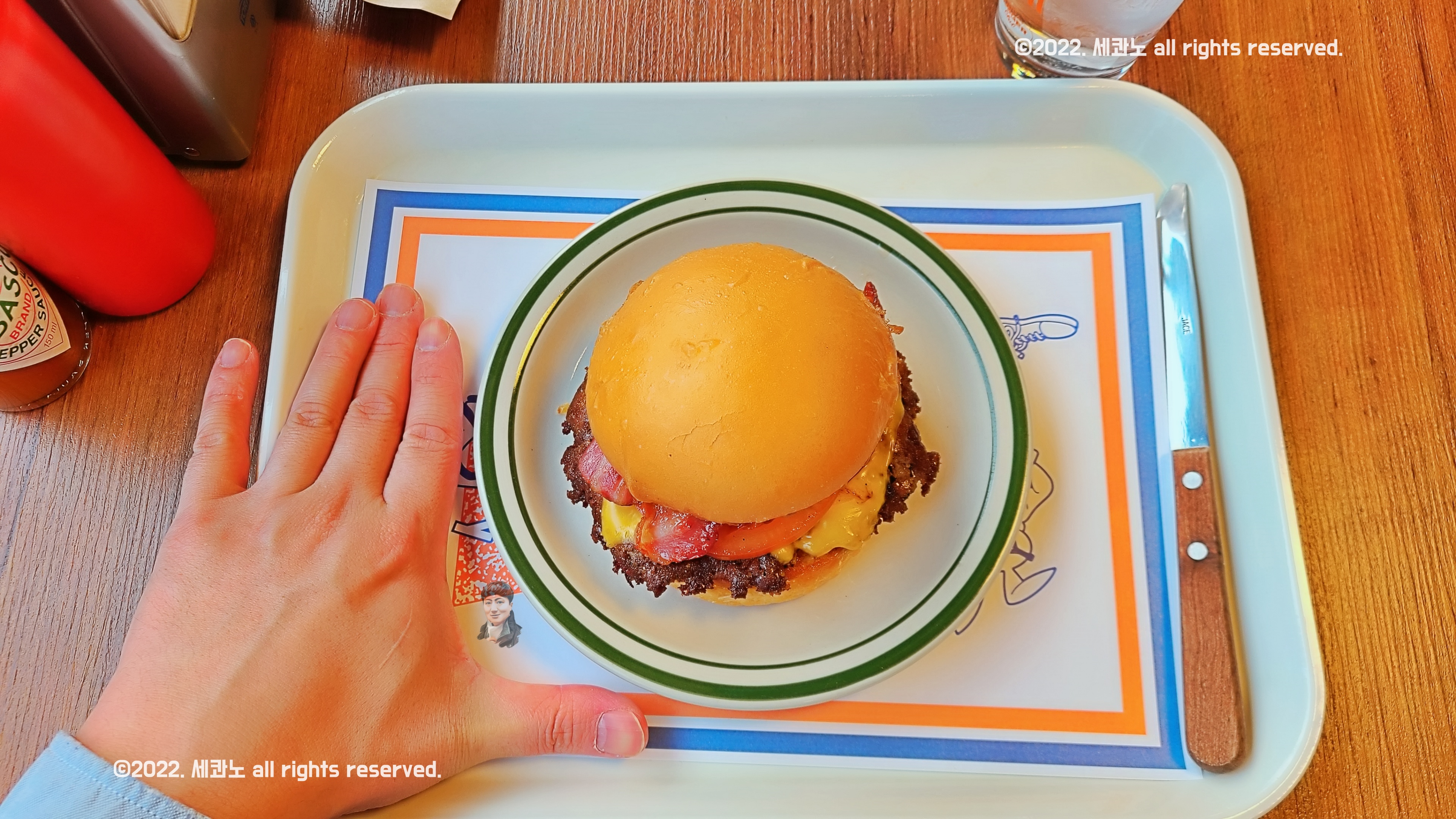 수제버거는 역시 나이프로 절반을 갈라 먹어야 제맛?
