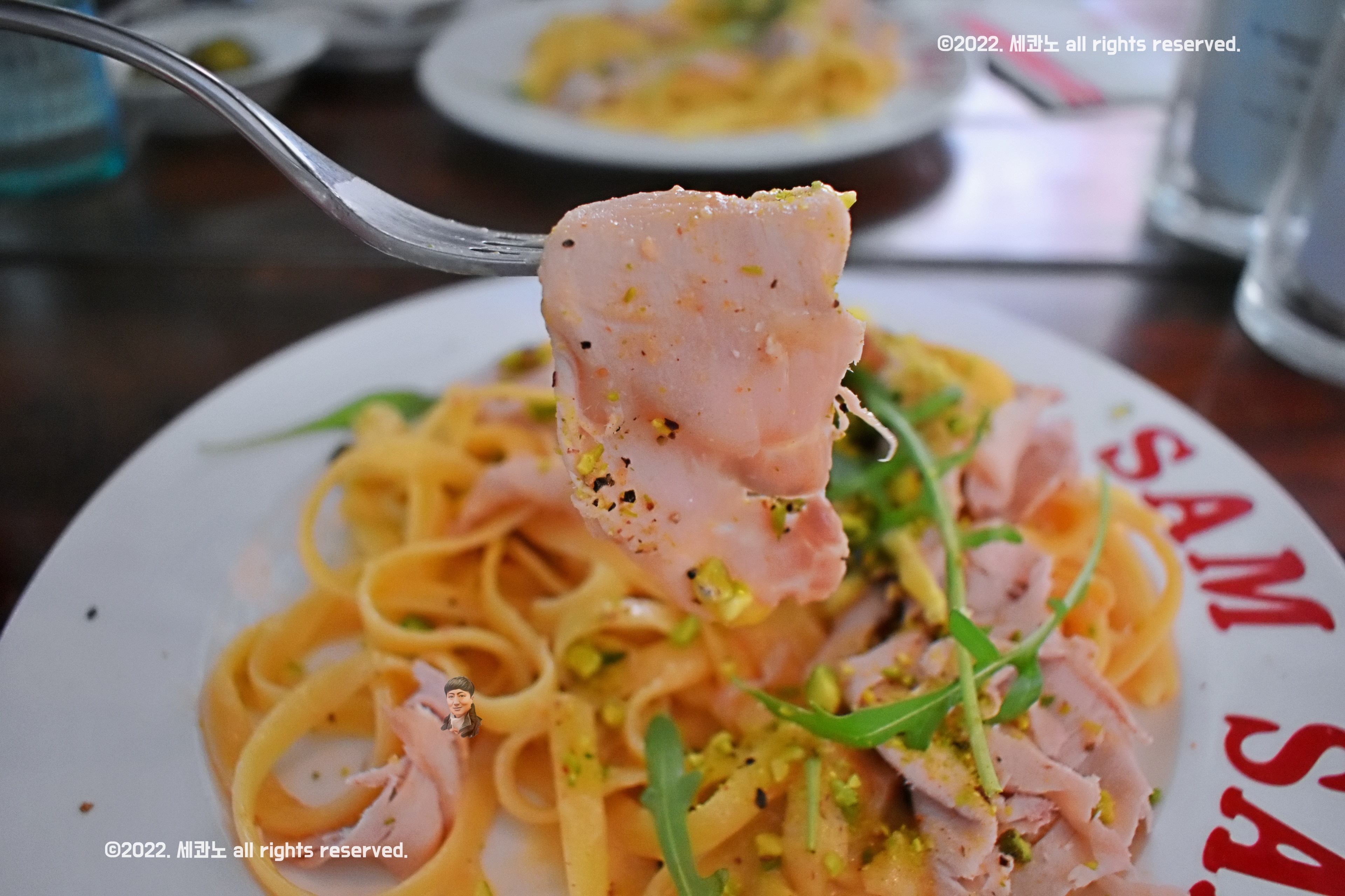 아마 파스타의 열기 때문에 좀 익은듯한 잠봉