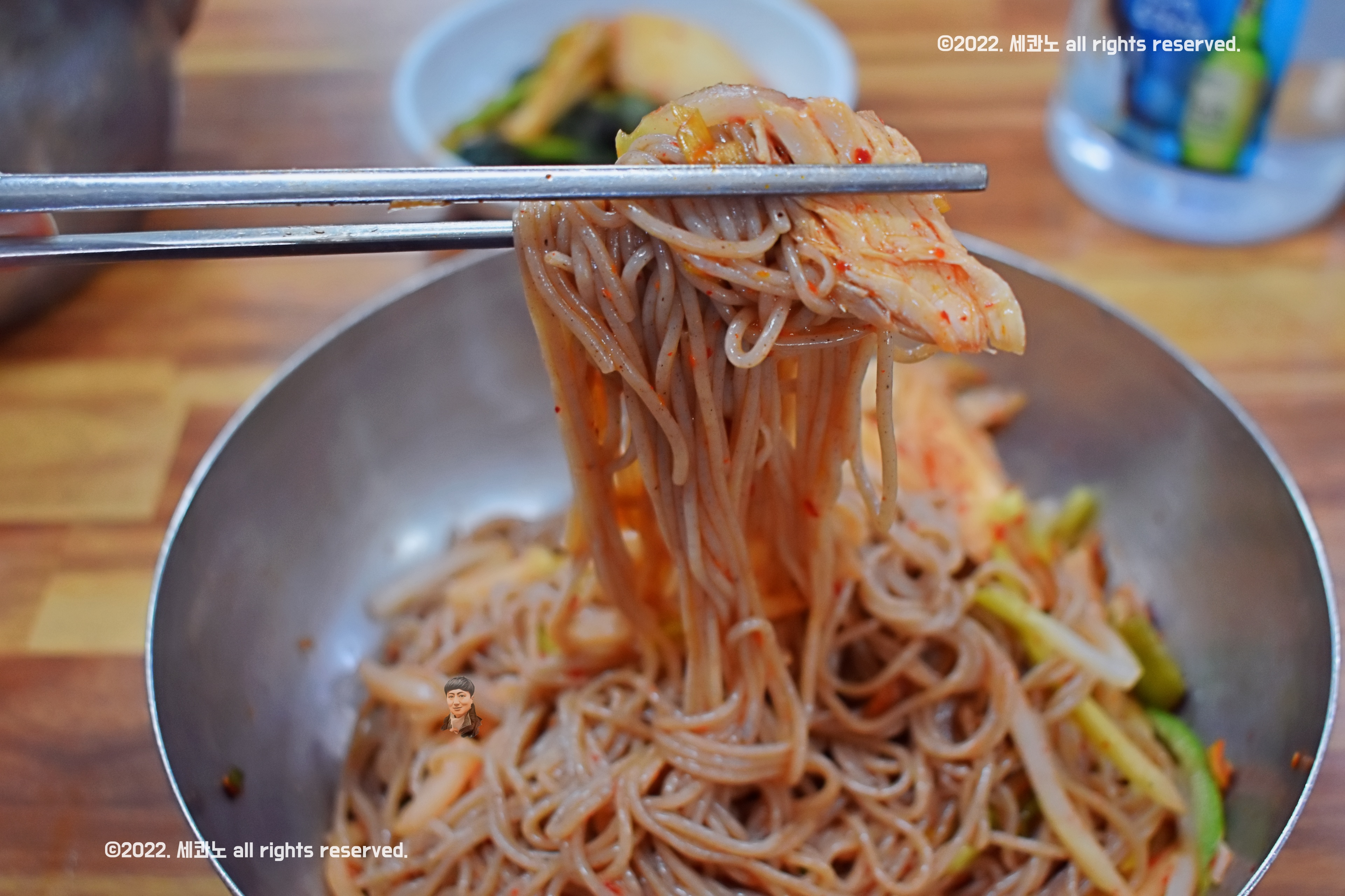메밀면의 경우에는 개인적으로 뚝뚝 끊어지는 걸 더 선호하는지라..