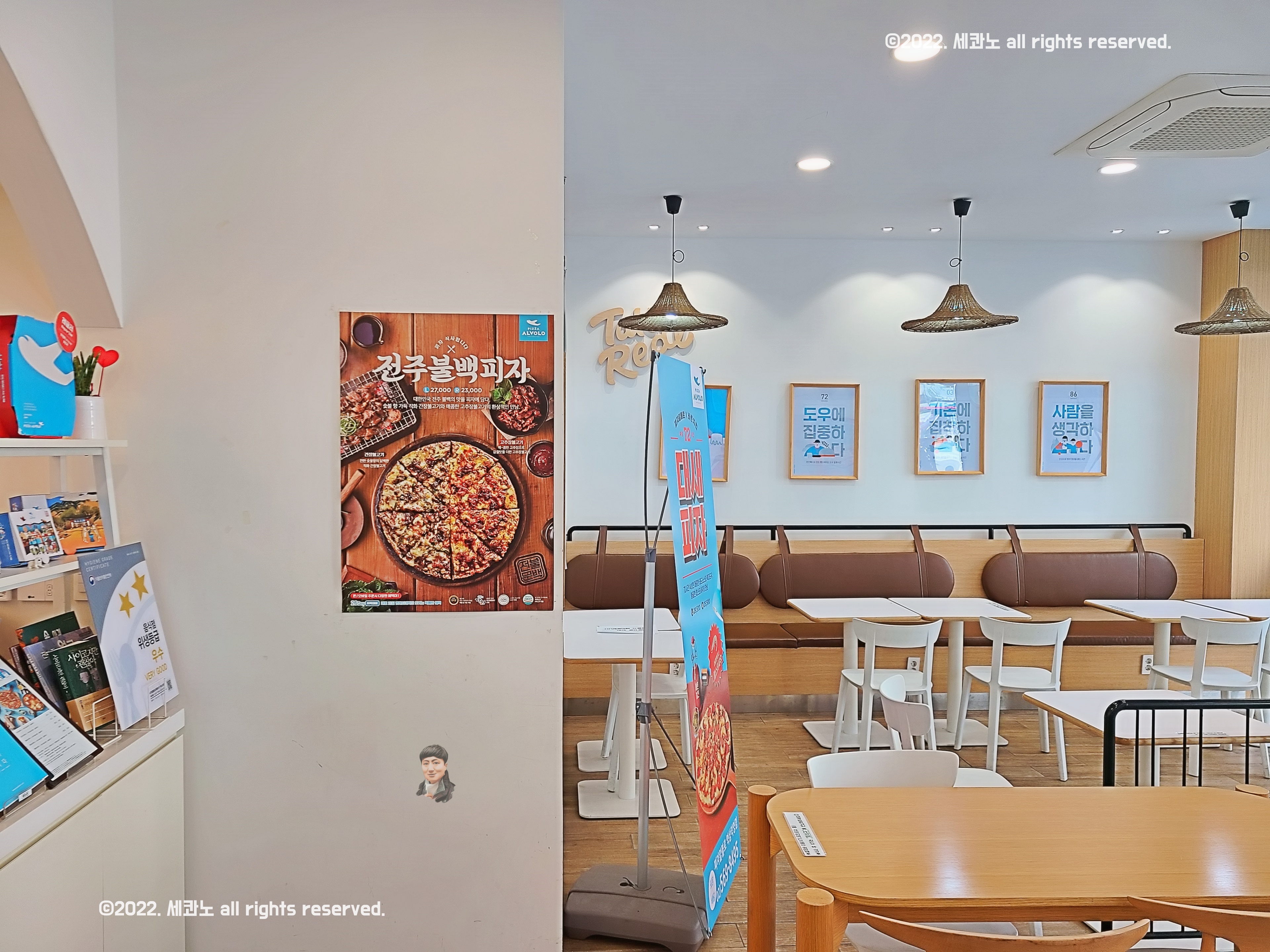 어찌되었든 한쪽에 포스터 붙어 있는 전주불백피자