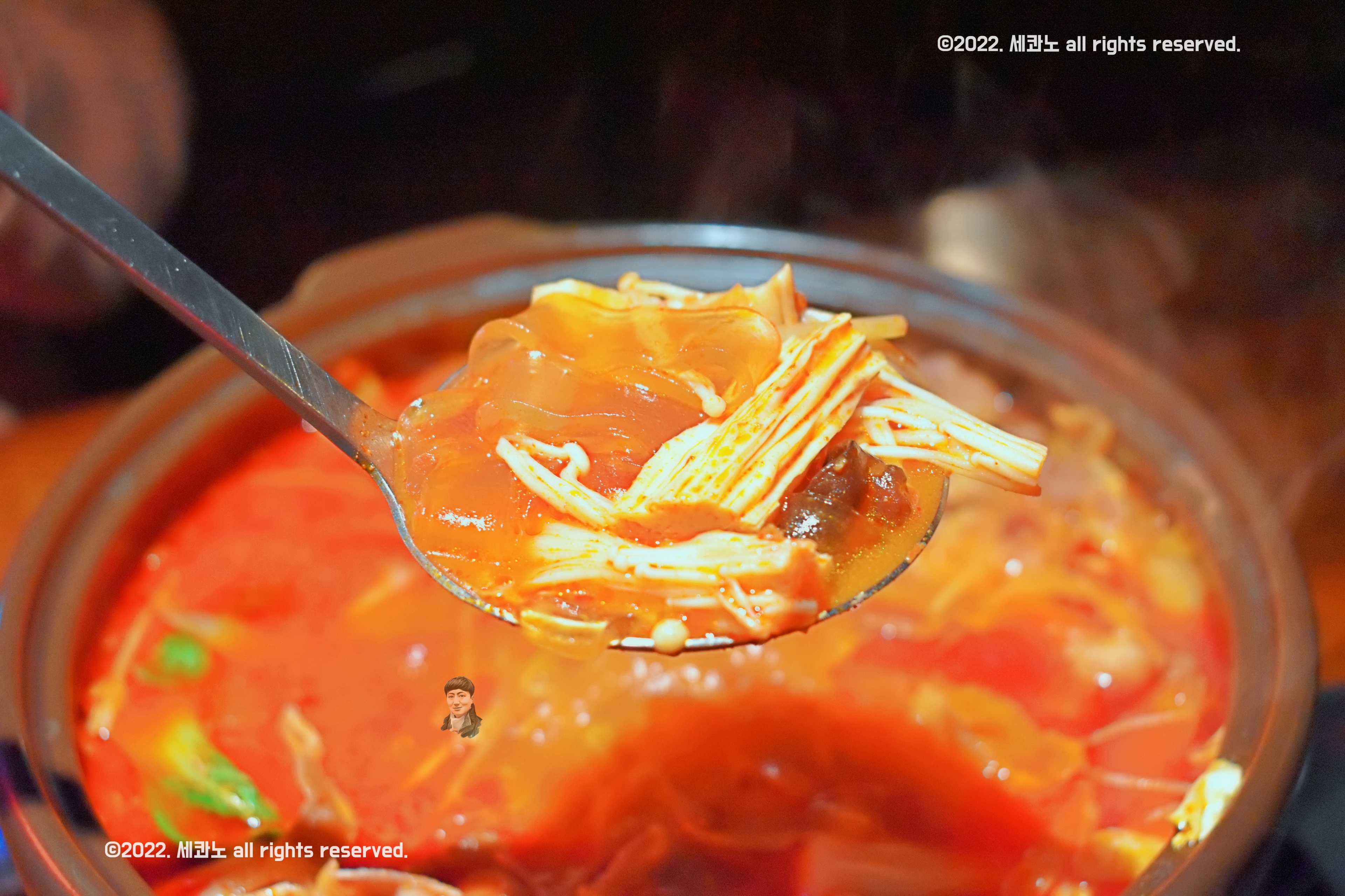 두 번째 국자로 뜰 때에는 당면이나 부죽 등