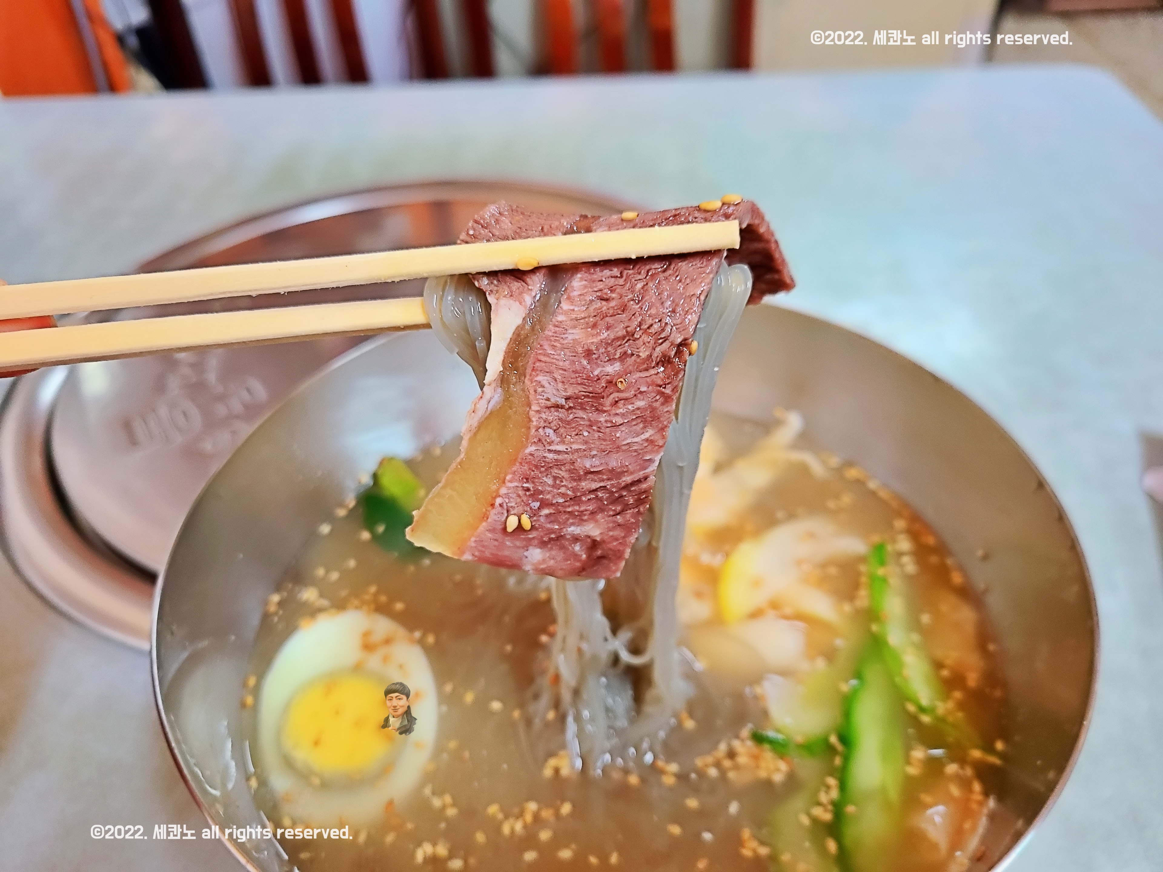 면이 기계면일 뿐, 육수는 황해도 냉면과 매우 흡사했다.