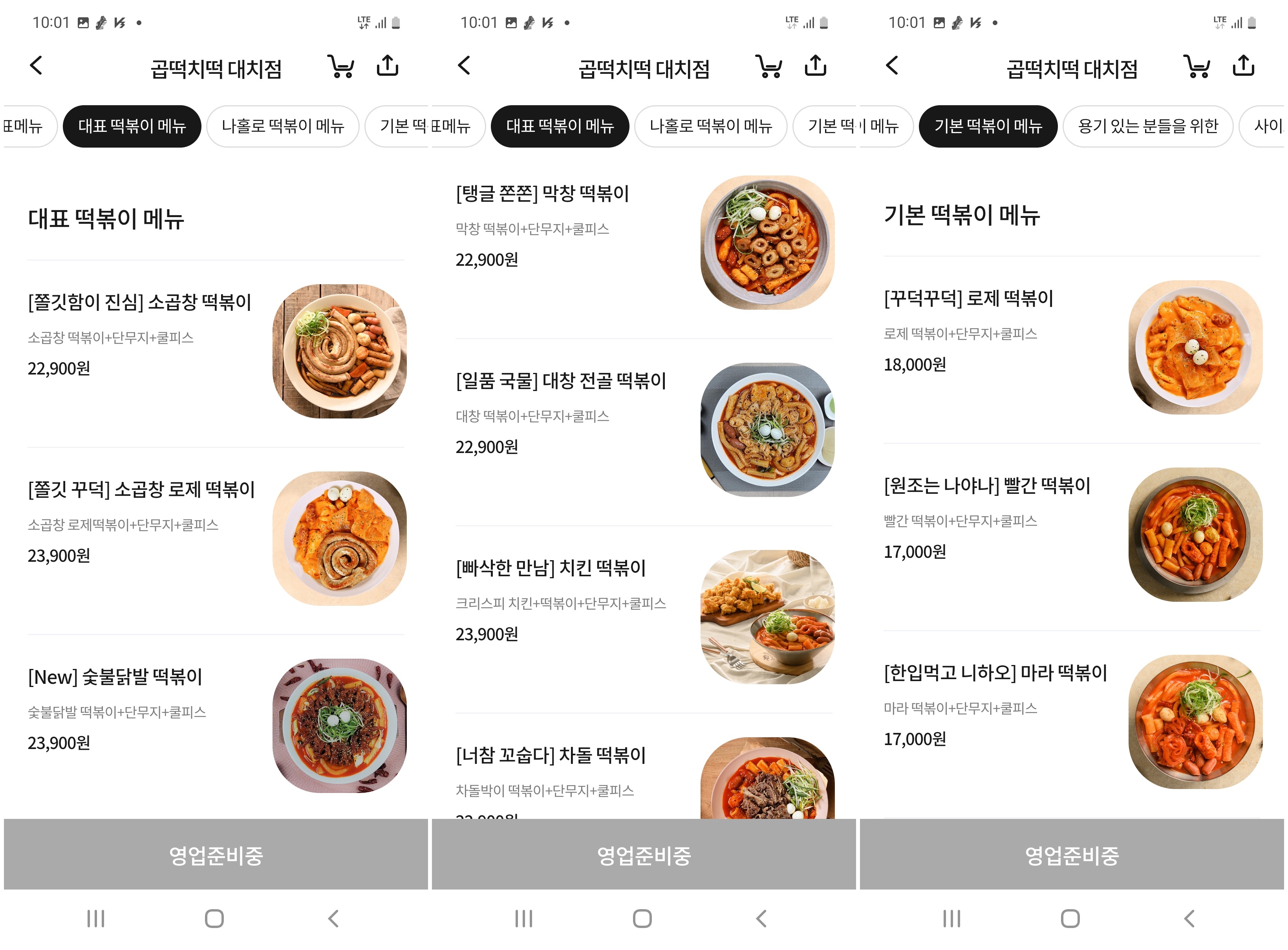 소곱창 떡볶이(22900원)에서부터 소곱창 로제 떡볶이(23900원)