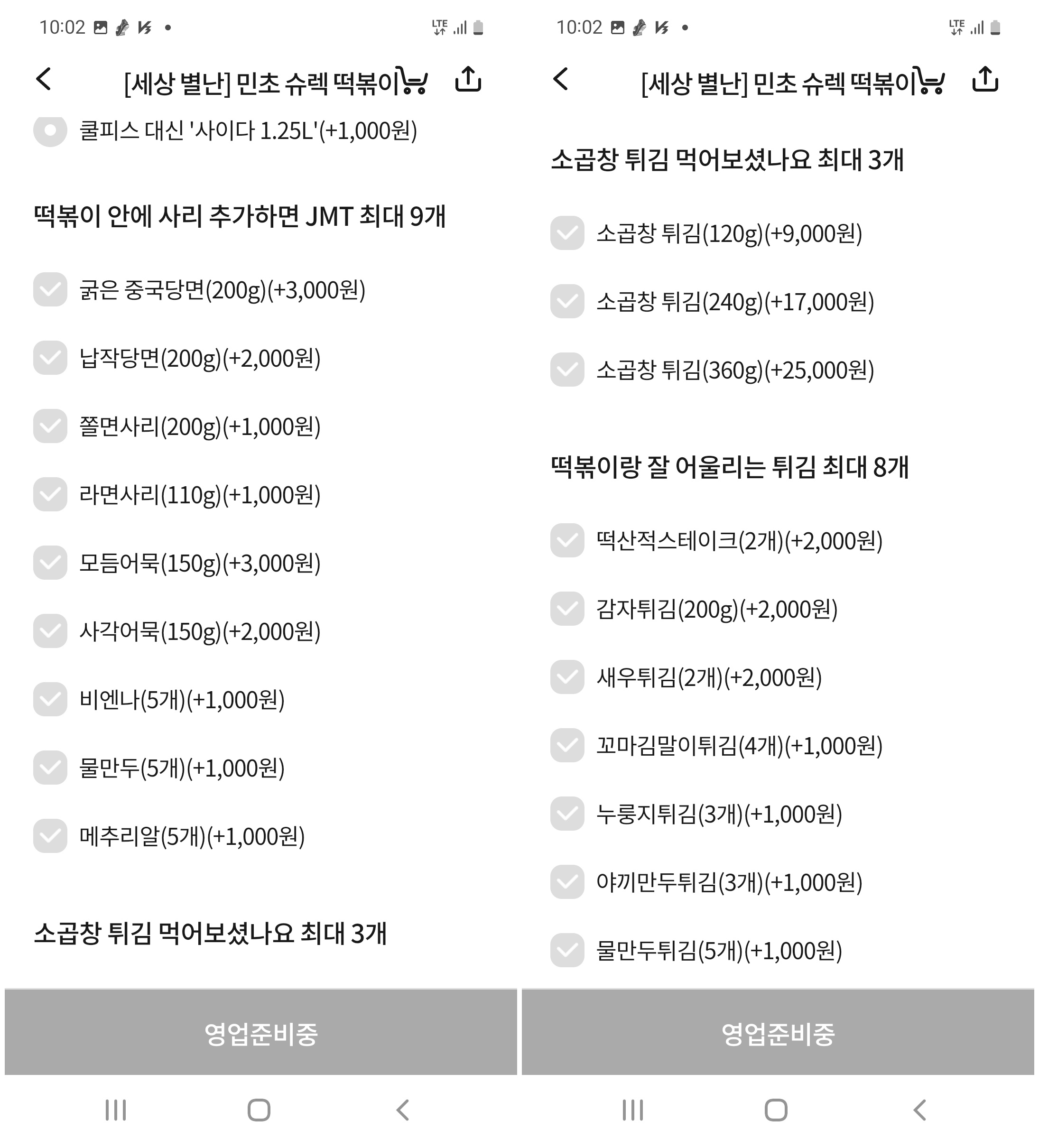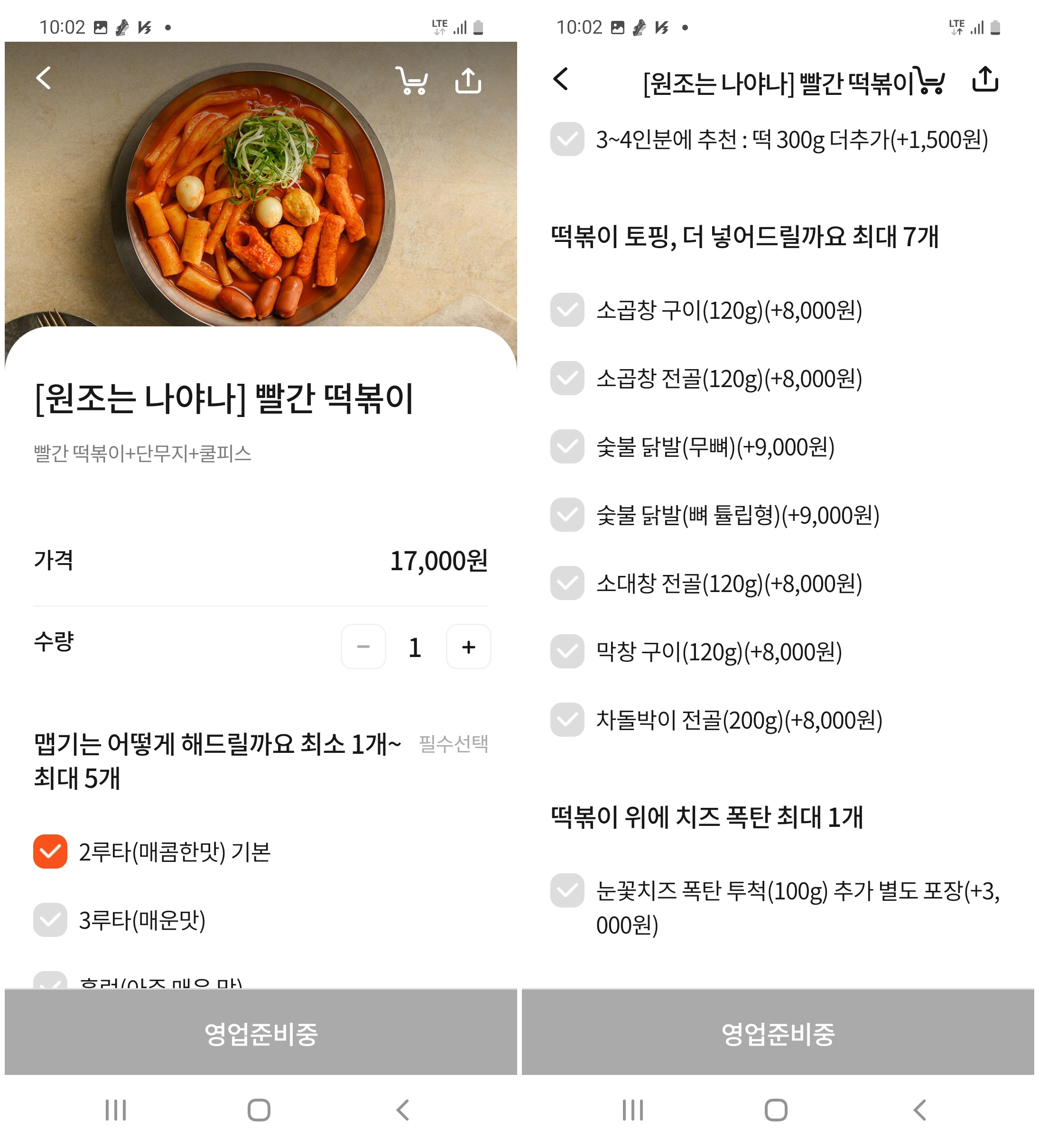 마라떡볶이와 간장떡볶이(17000원)가 있었고
