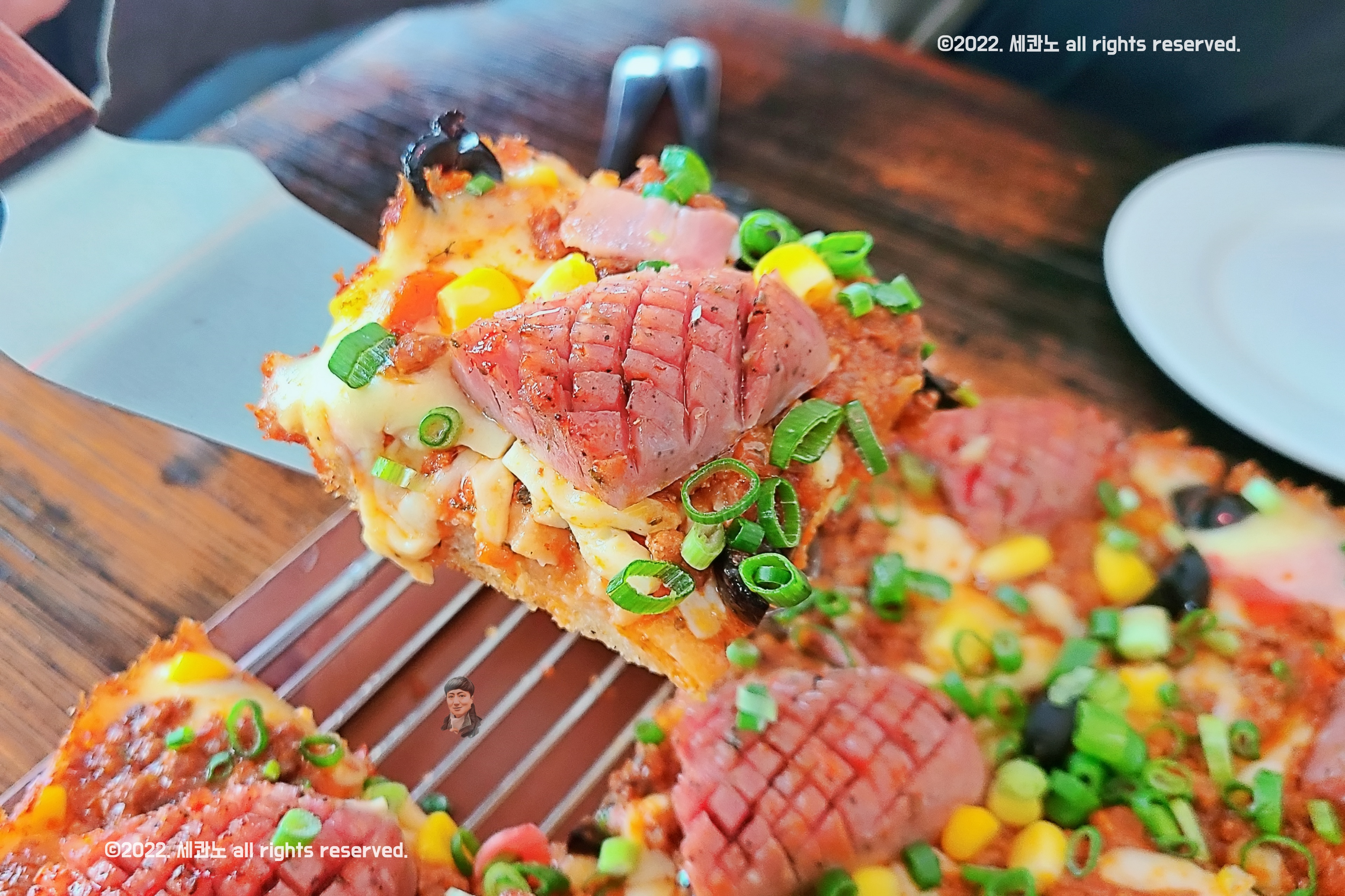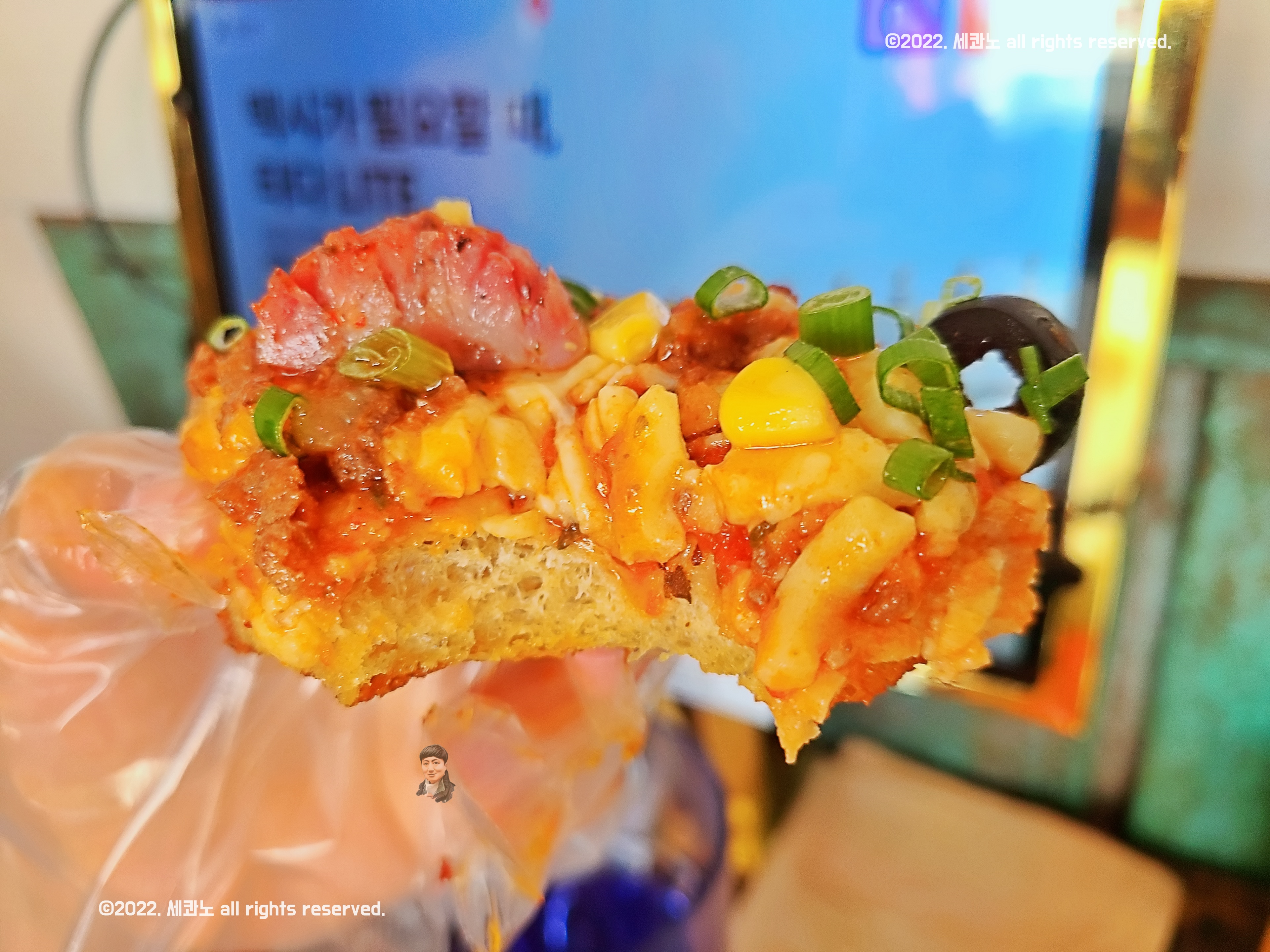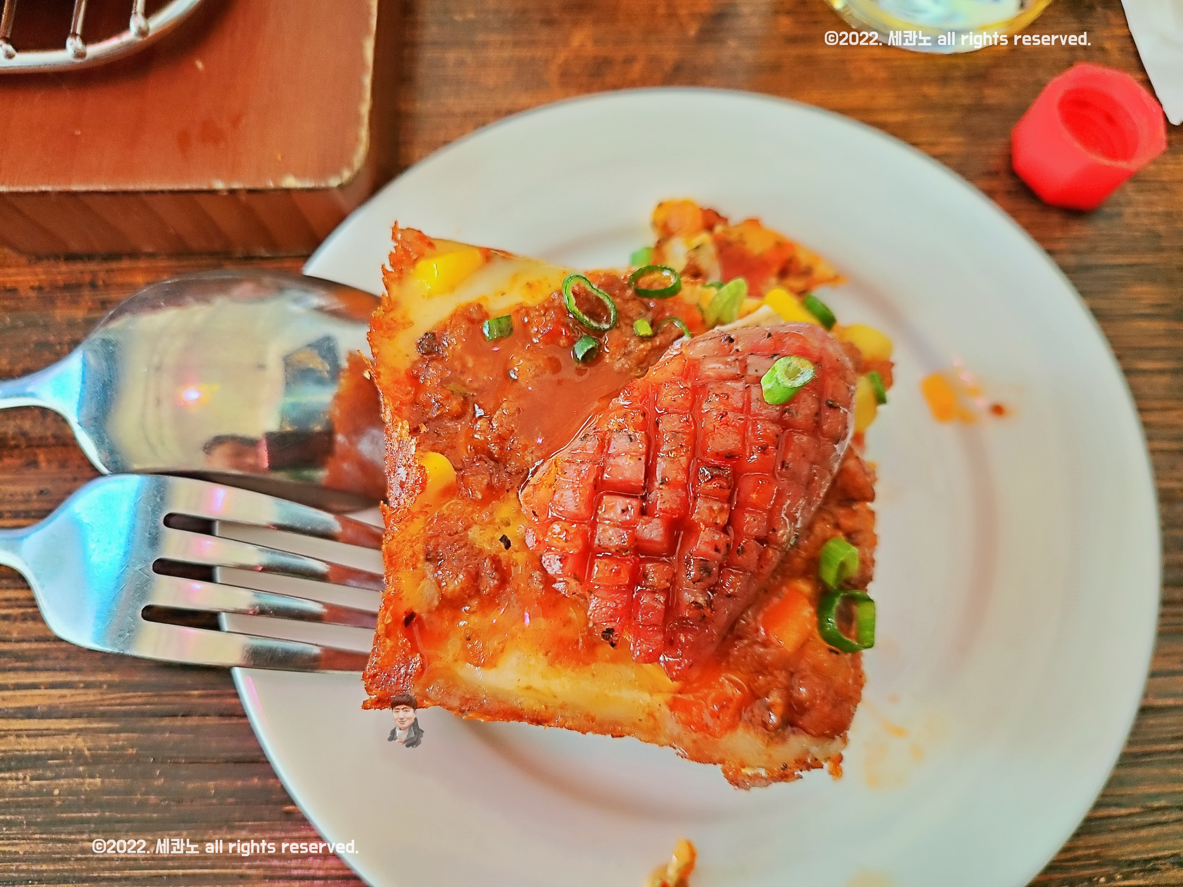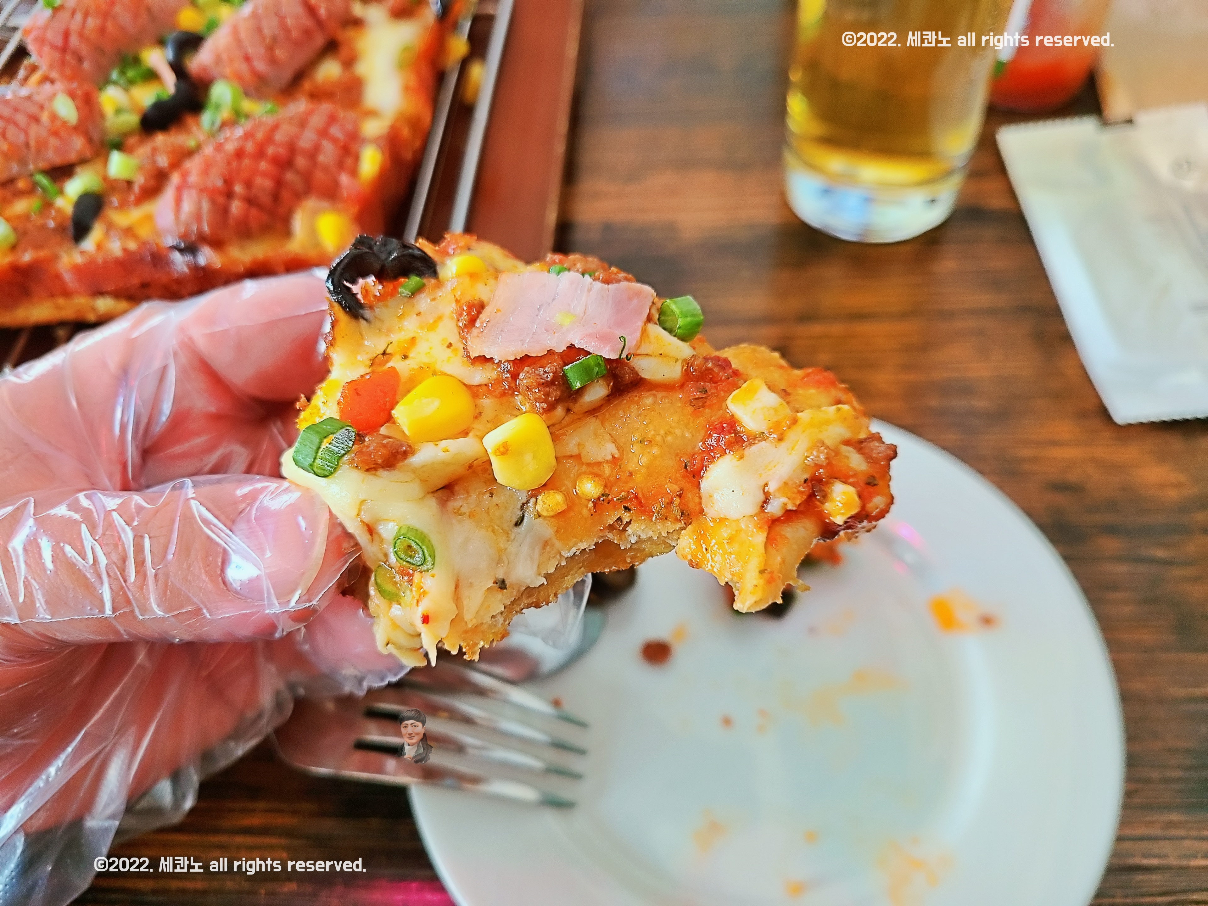 사진을 보면 알겠지만 세콰노는 육식맨st 피자를 주문해 먹었다.