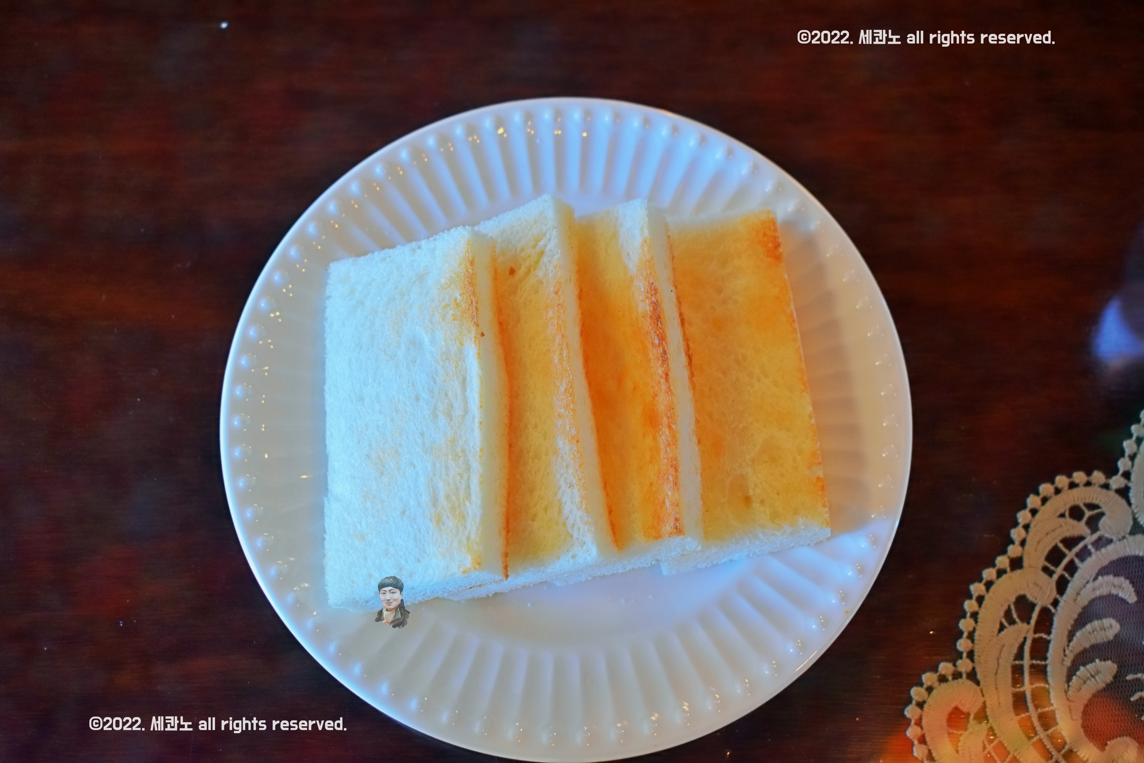식빵이 식전빵으로, 그리고 그 엣지를 잘라 튀겨낸 달고나 러스크가 후식으로 나왔다.
