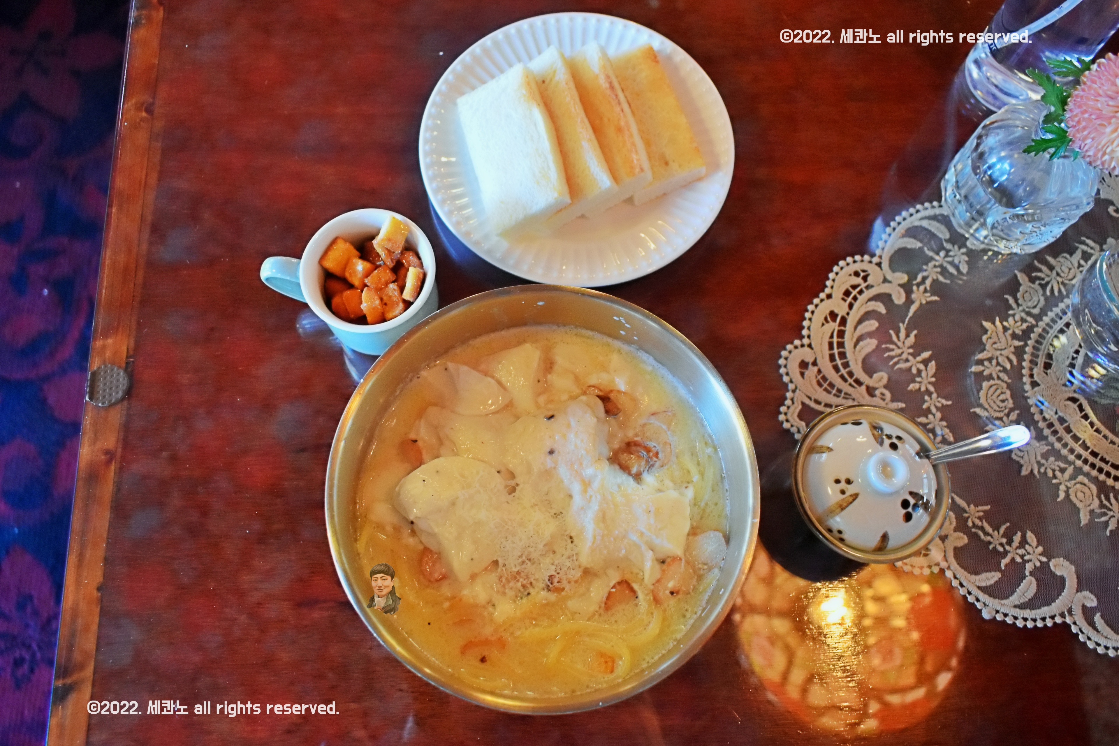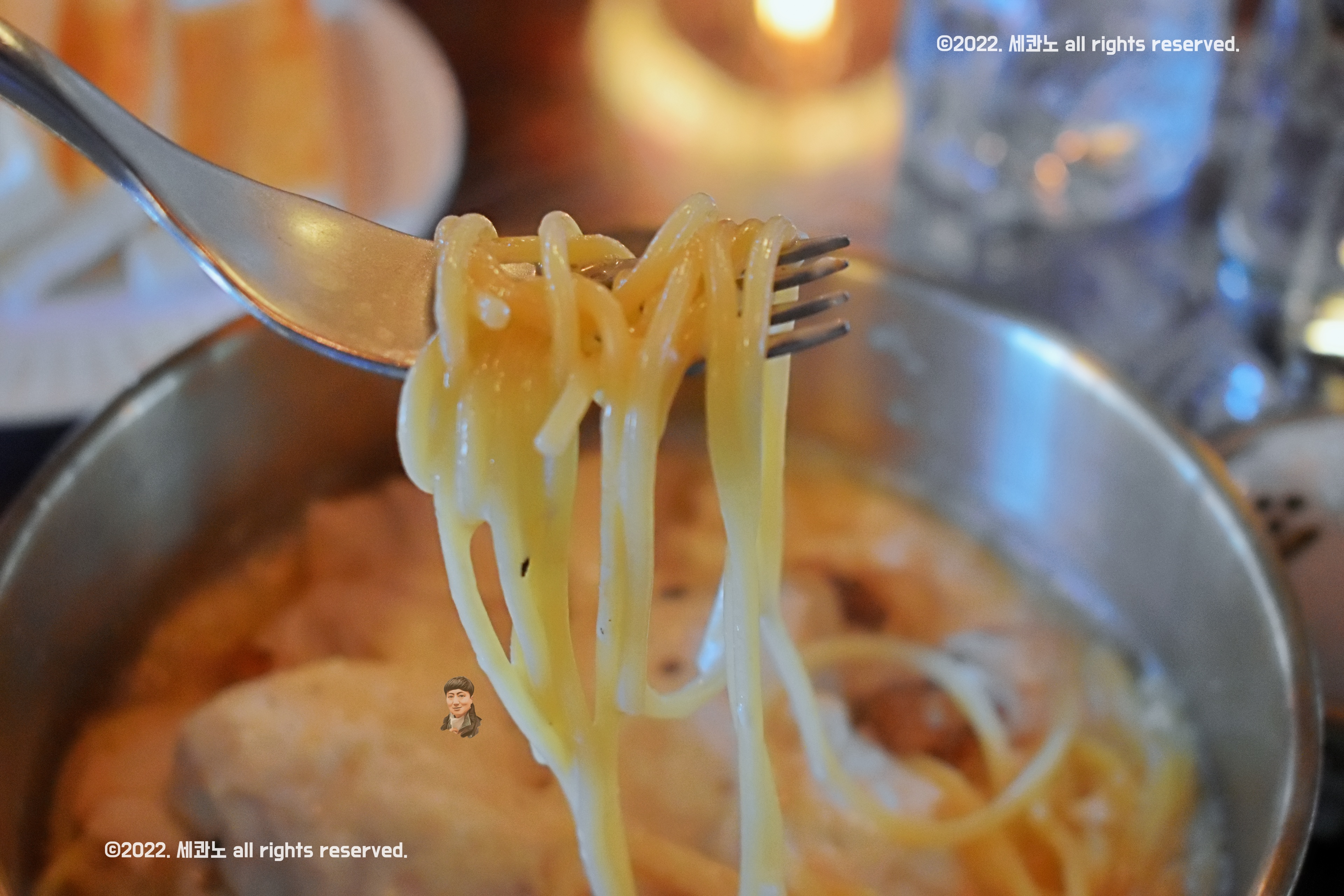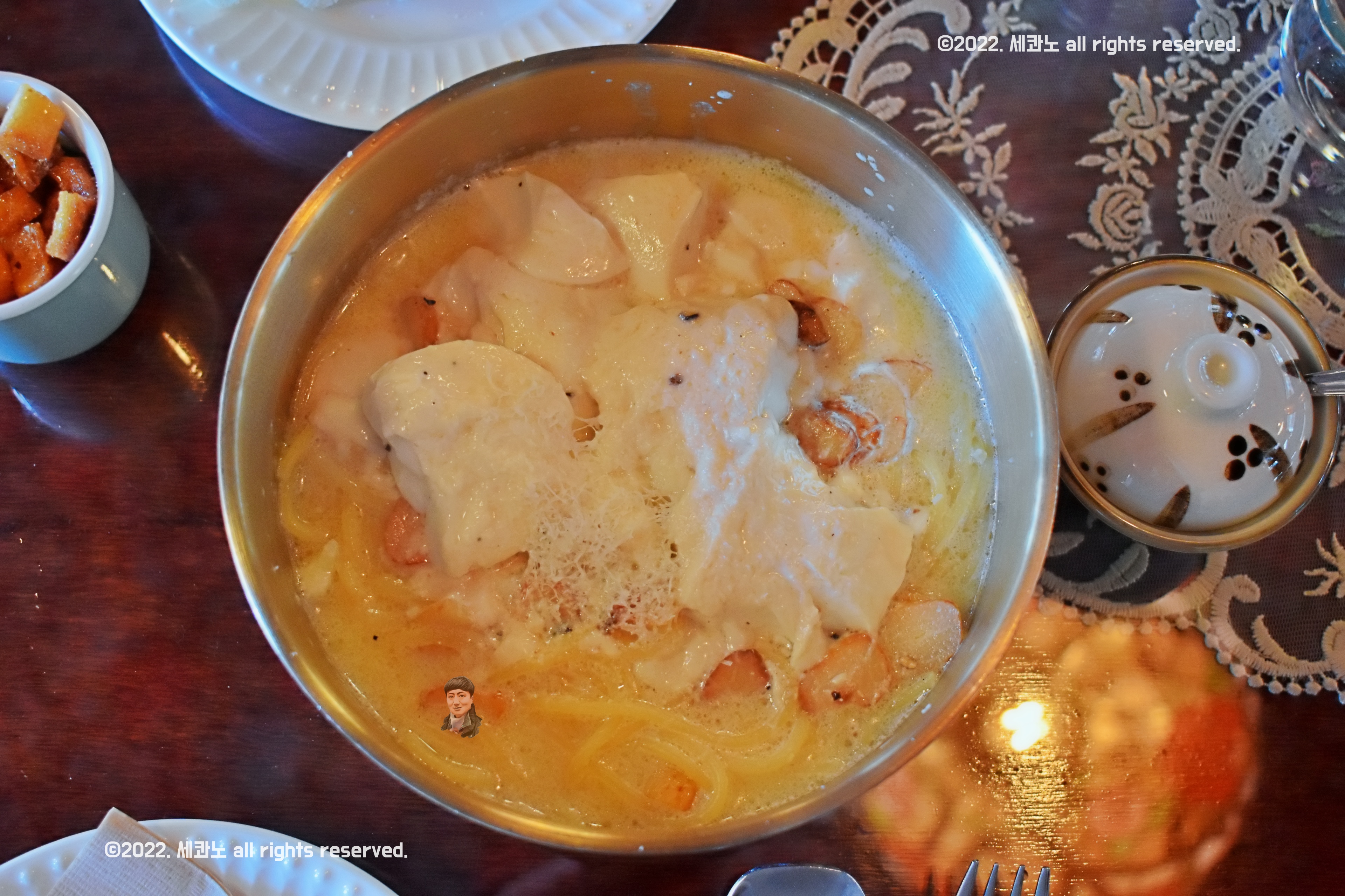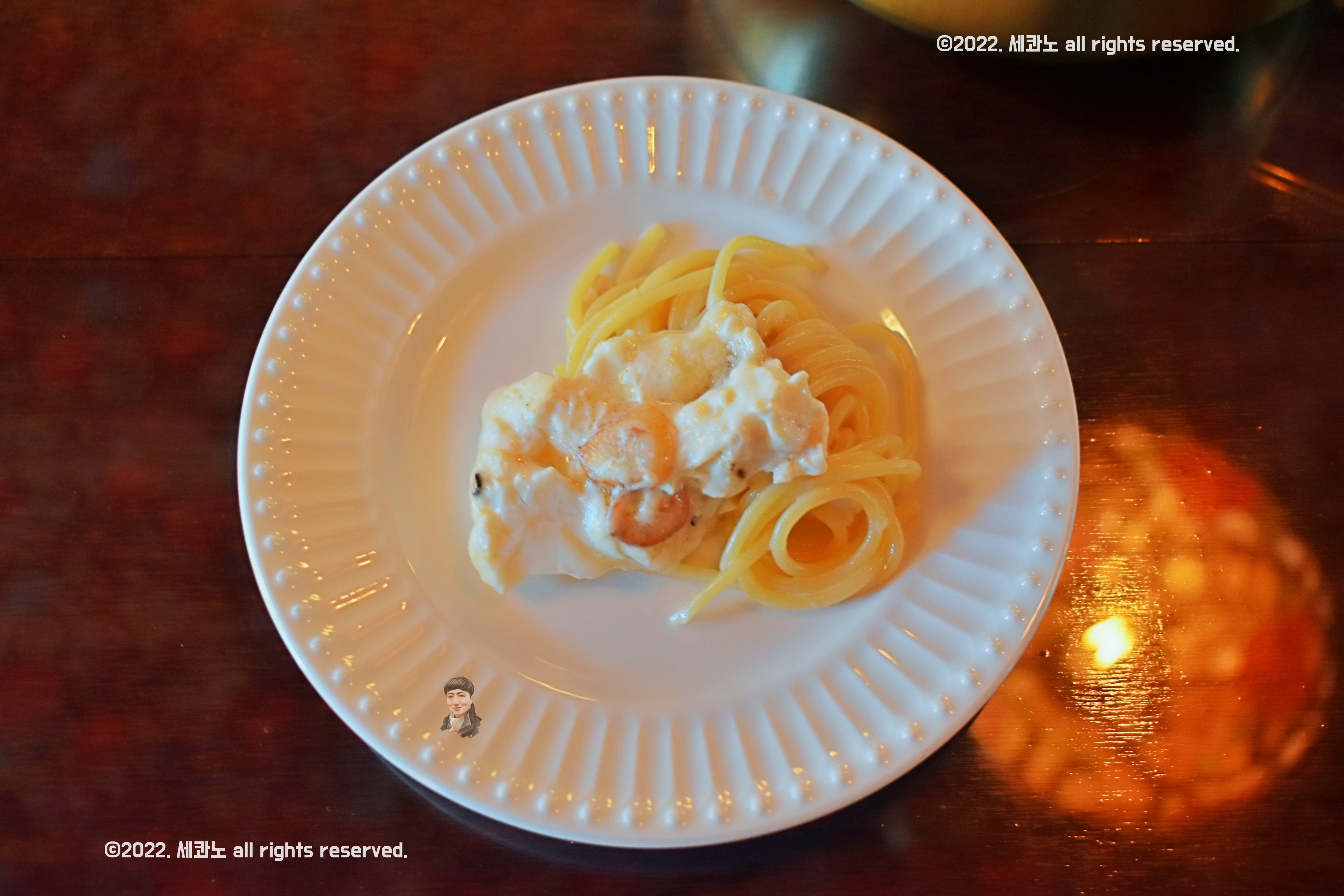 오로지 식스센스 한식퓨전 파스타 중 순두부 파스타만 먹었다.