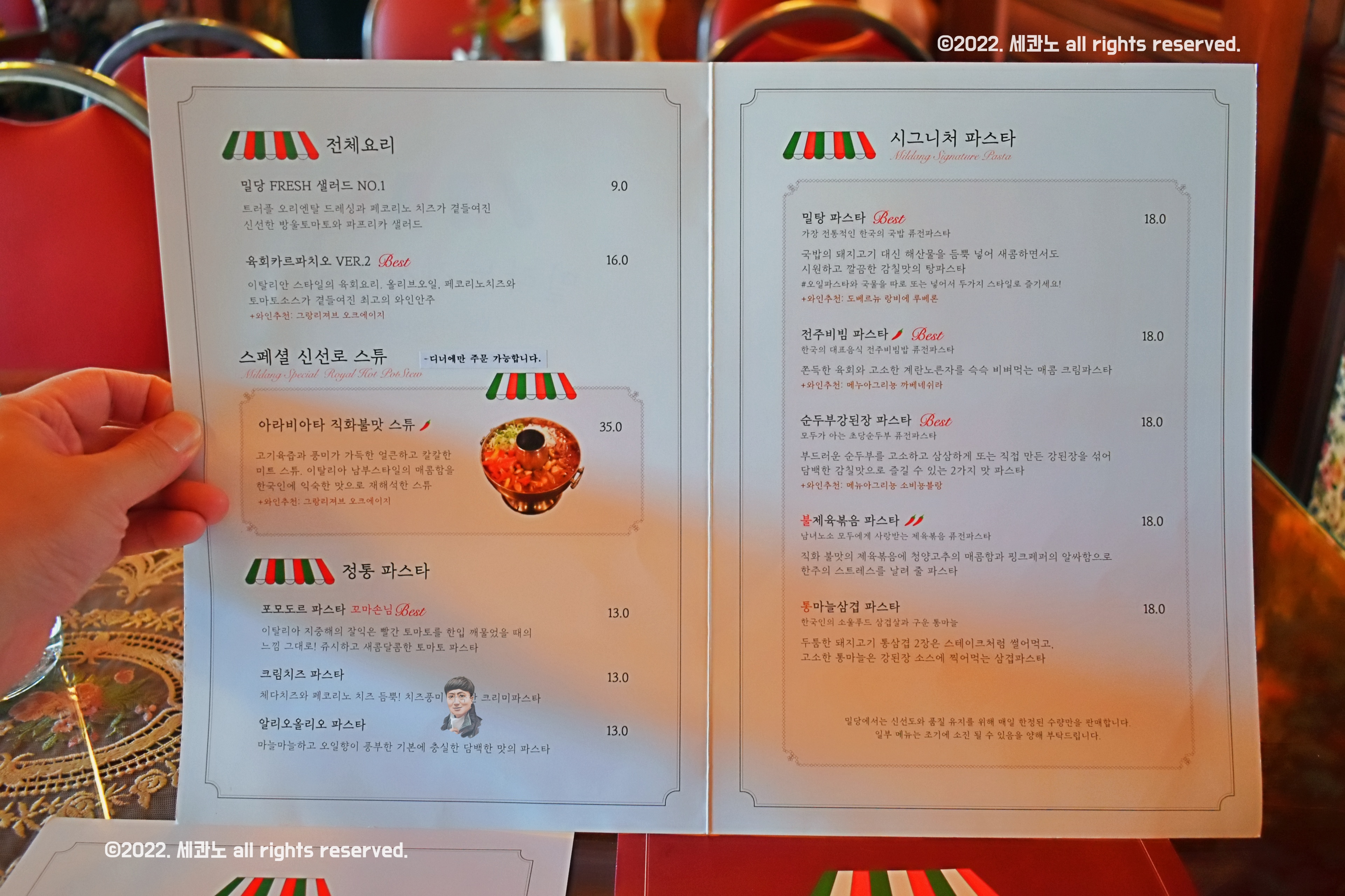 더군다나 메뉴판에 '밀라노 ㄱ'까지 선명하게 보였다.