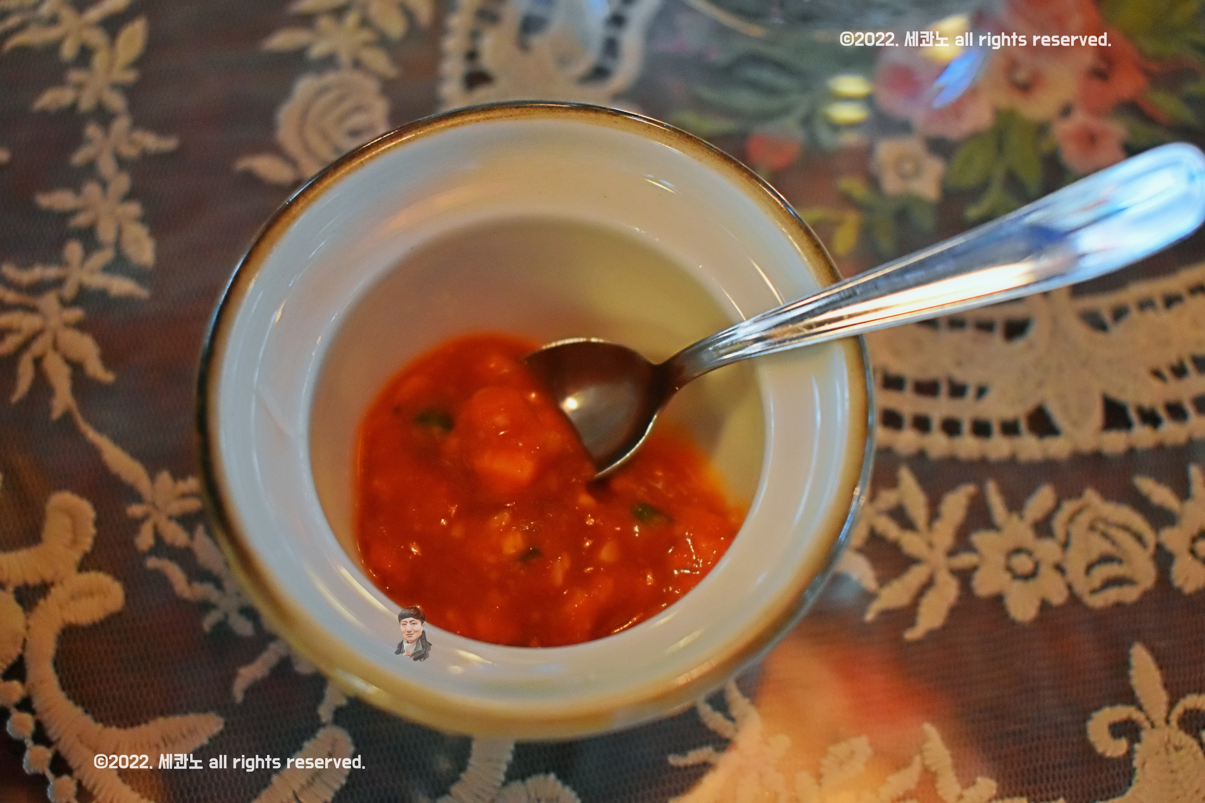 그래서 물어봤더니 직접 만든 토마토소스에 쌈장을 섞었다던가