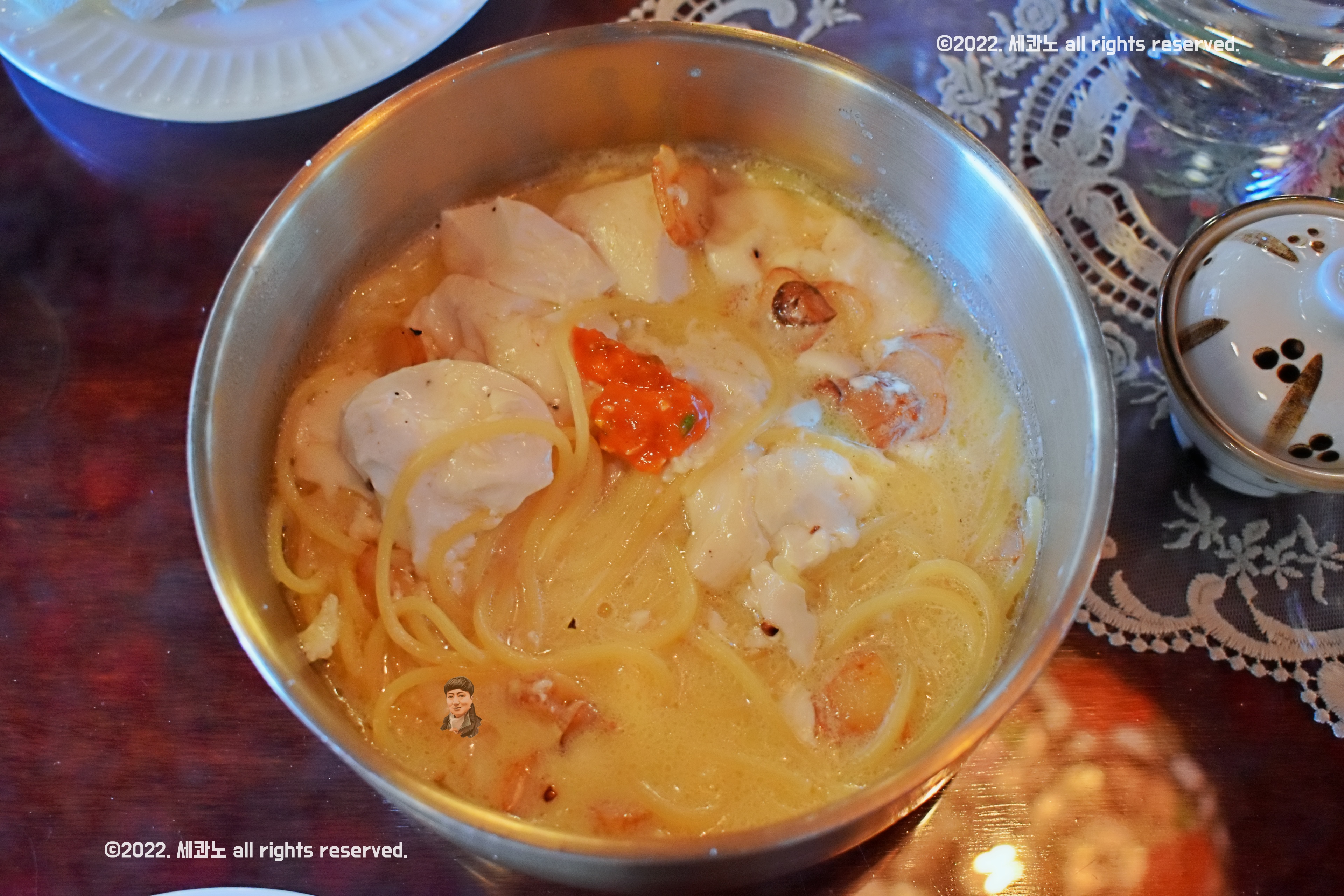 오로지 식스센스 한식퓨전 파스타 중 순두부 파스타만 먹었다.