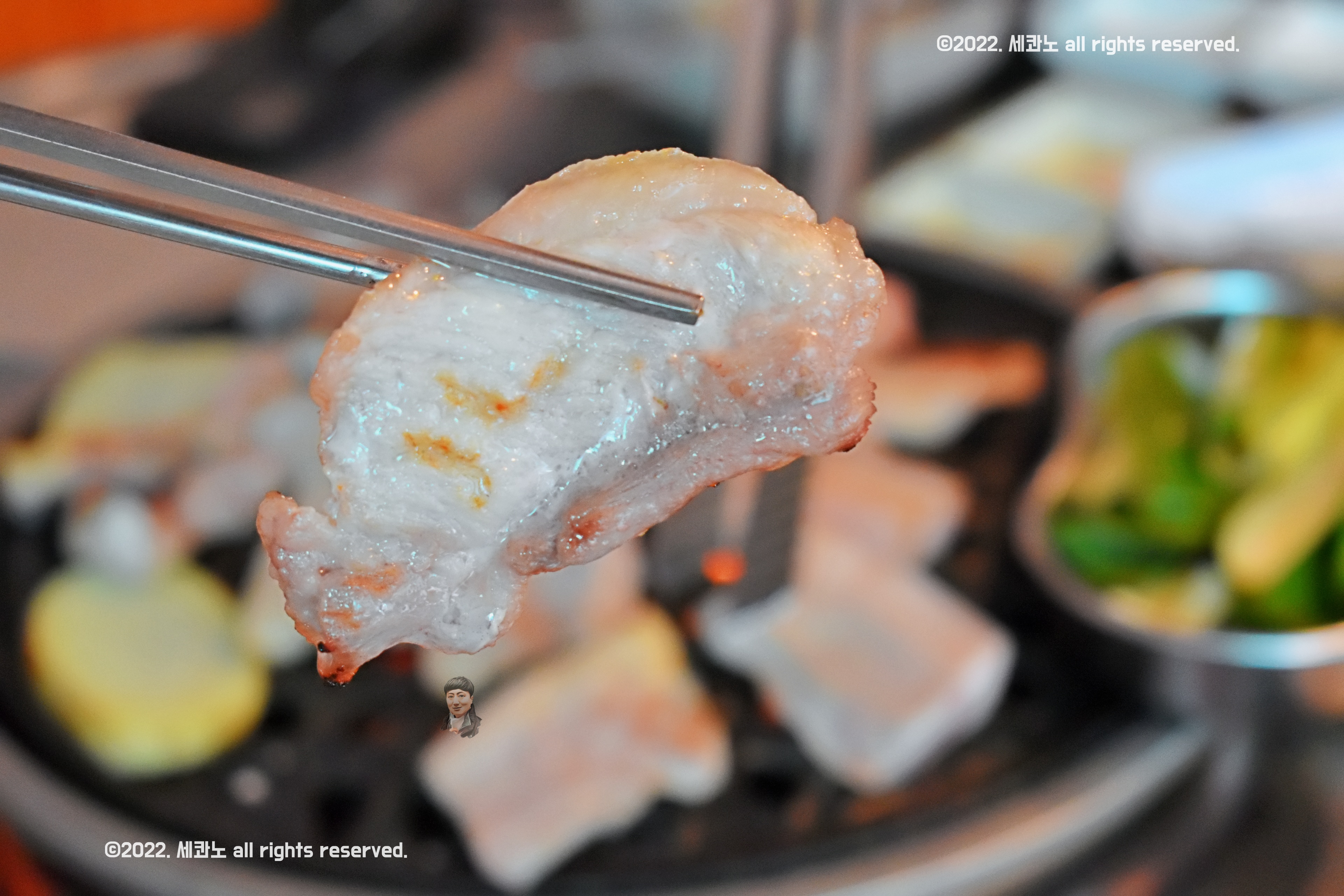 아무래도 얇은 하얀살, 항정살이 빨리 익는다.
