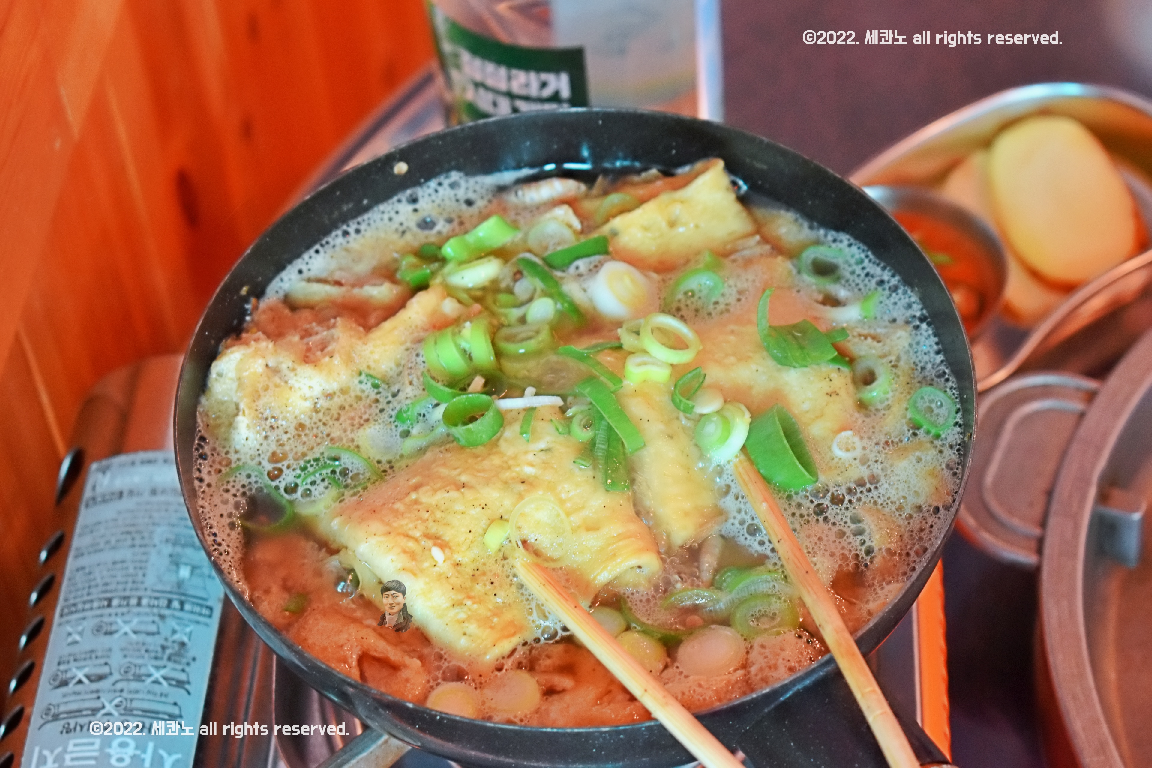 서비스 국물에는 어묵꼬치 2개가 들어가 있었다.
