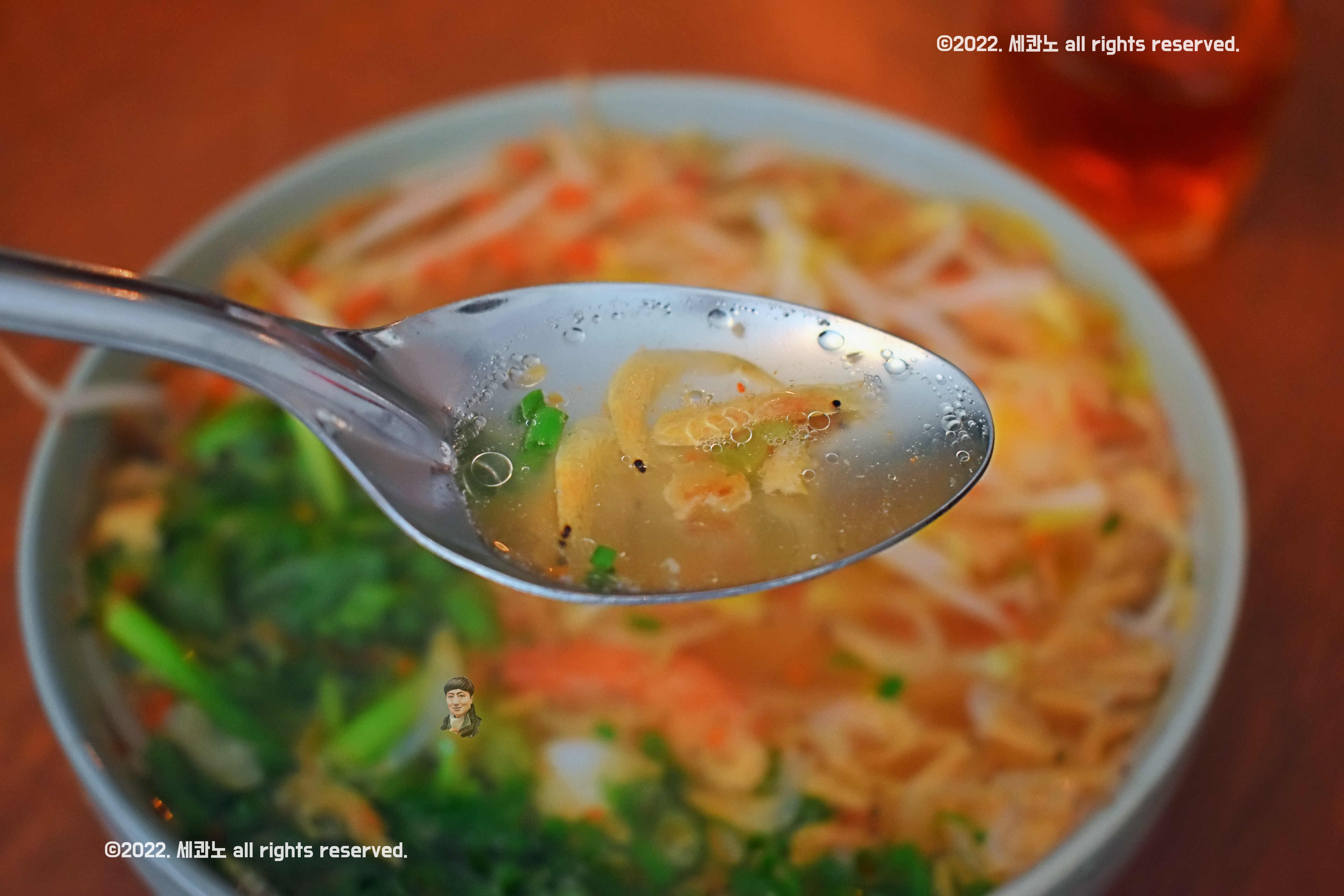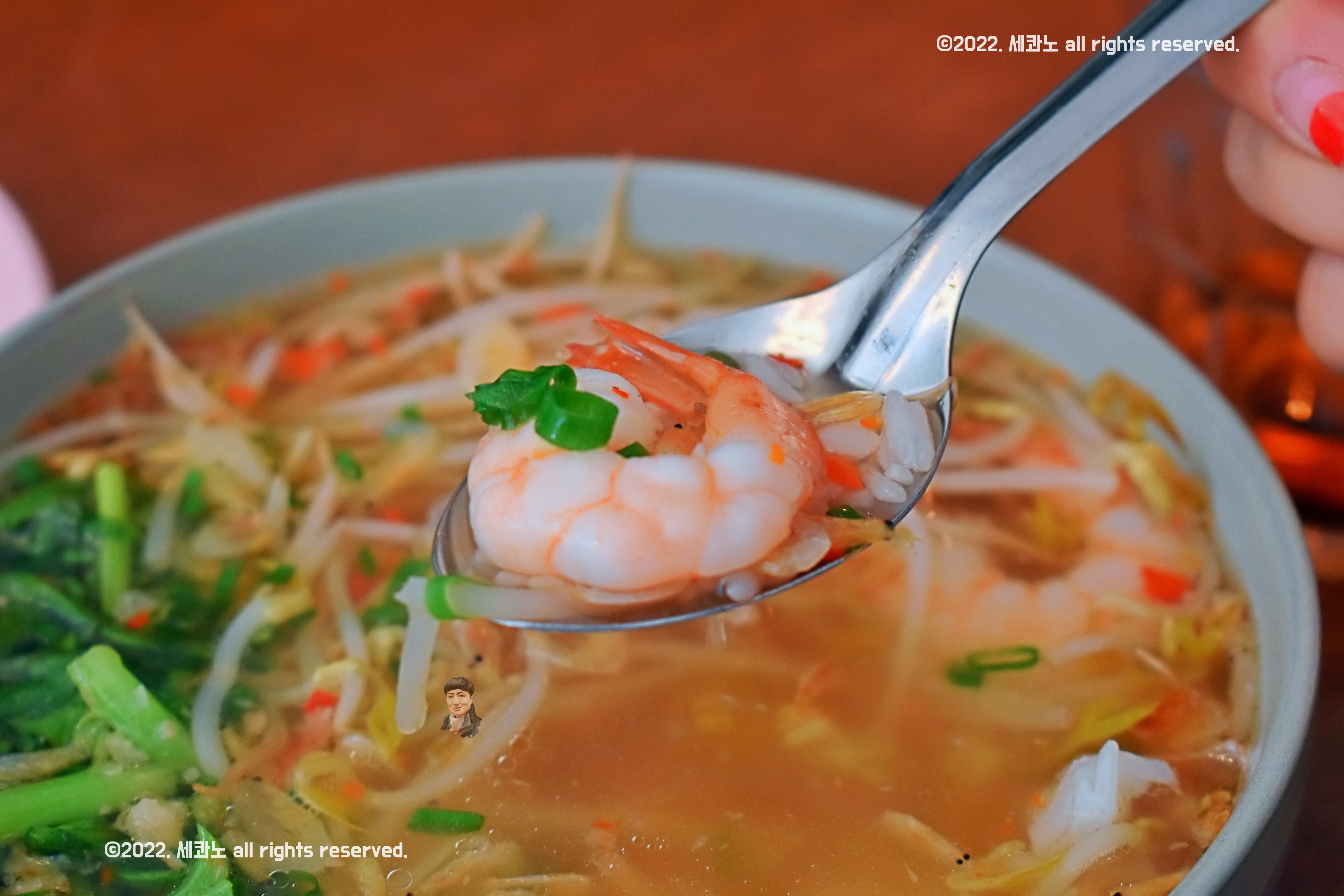 새우와 닭의 감칠맛, 숙주와 각종 야채 등이 어우러져