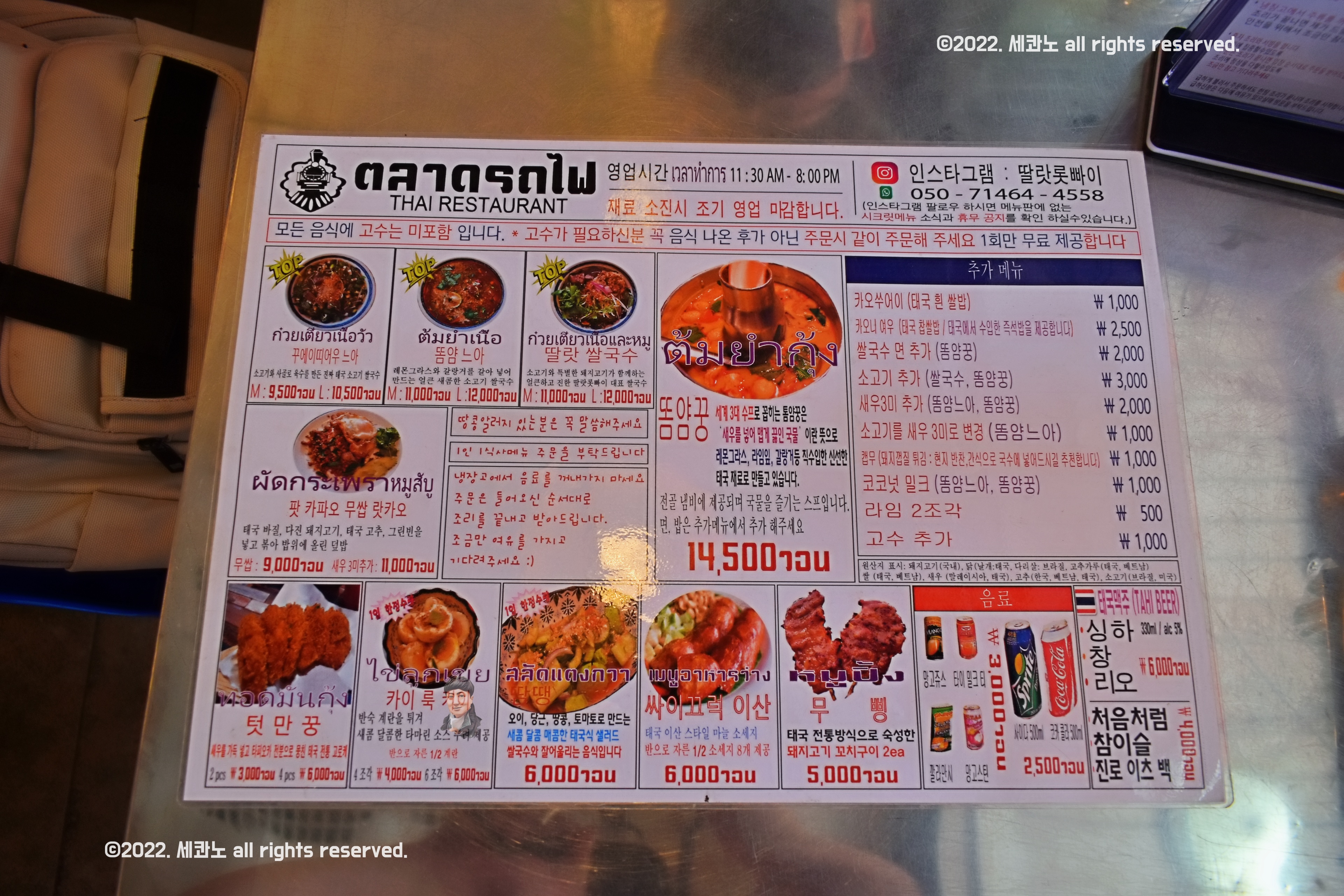 샤로수길 태국 쌀국수 전문점 딸랏롯빠이 메뉴판, 가격