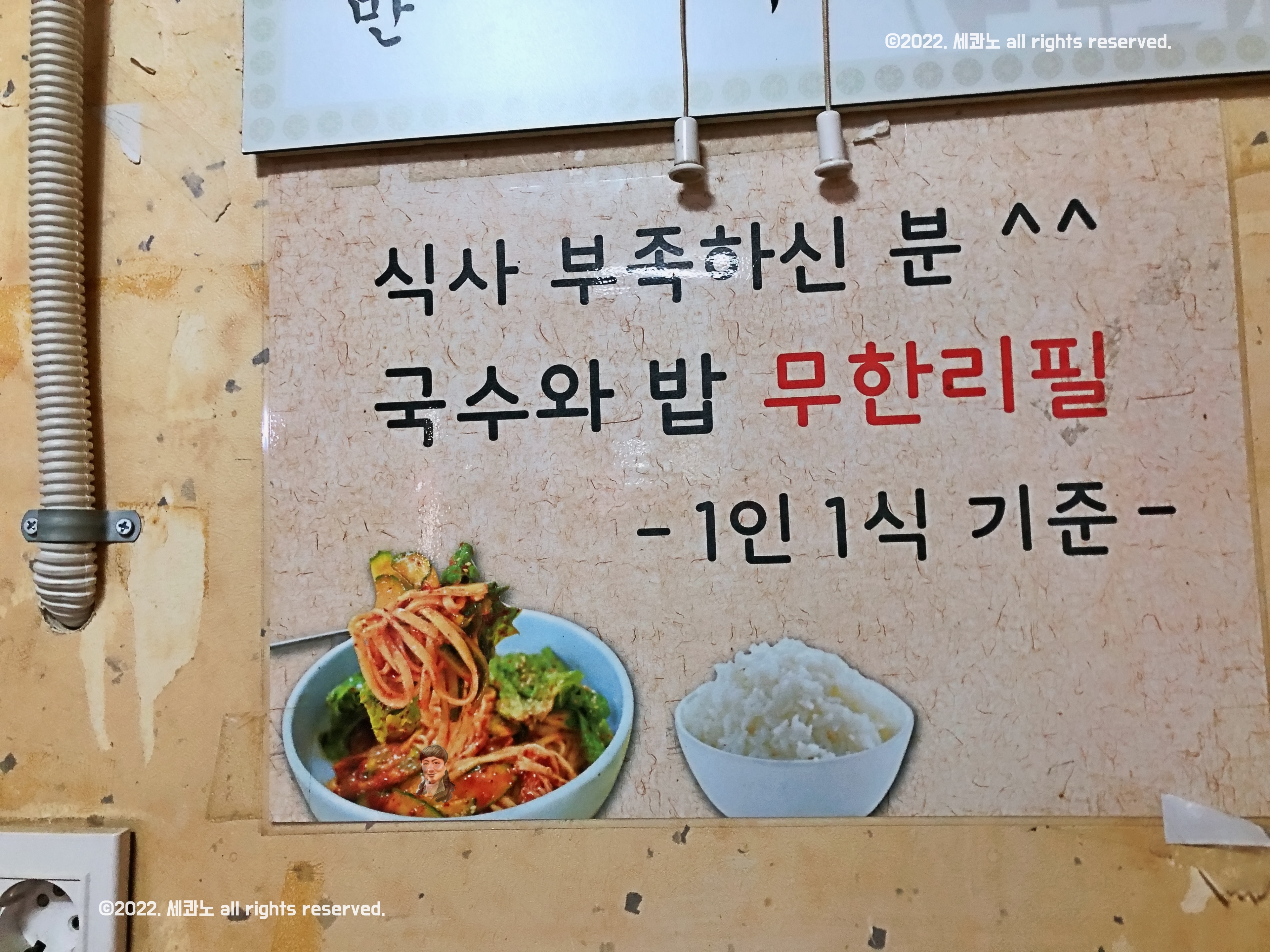 식사 부족하면 국수와 밥 무한리필 해주었는데..