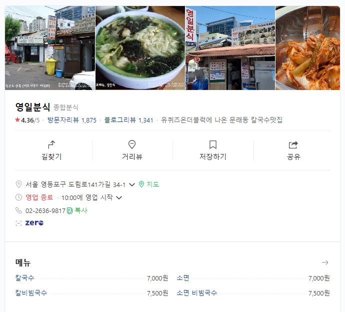영일분식에서 문래동 칼비빔국수