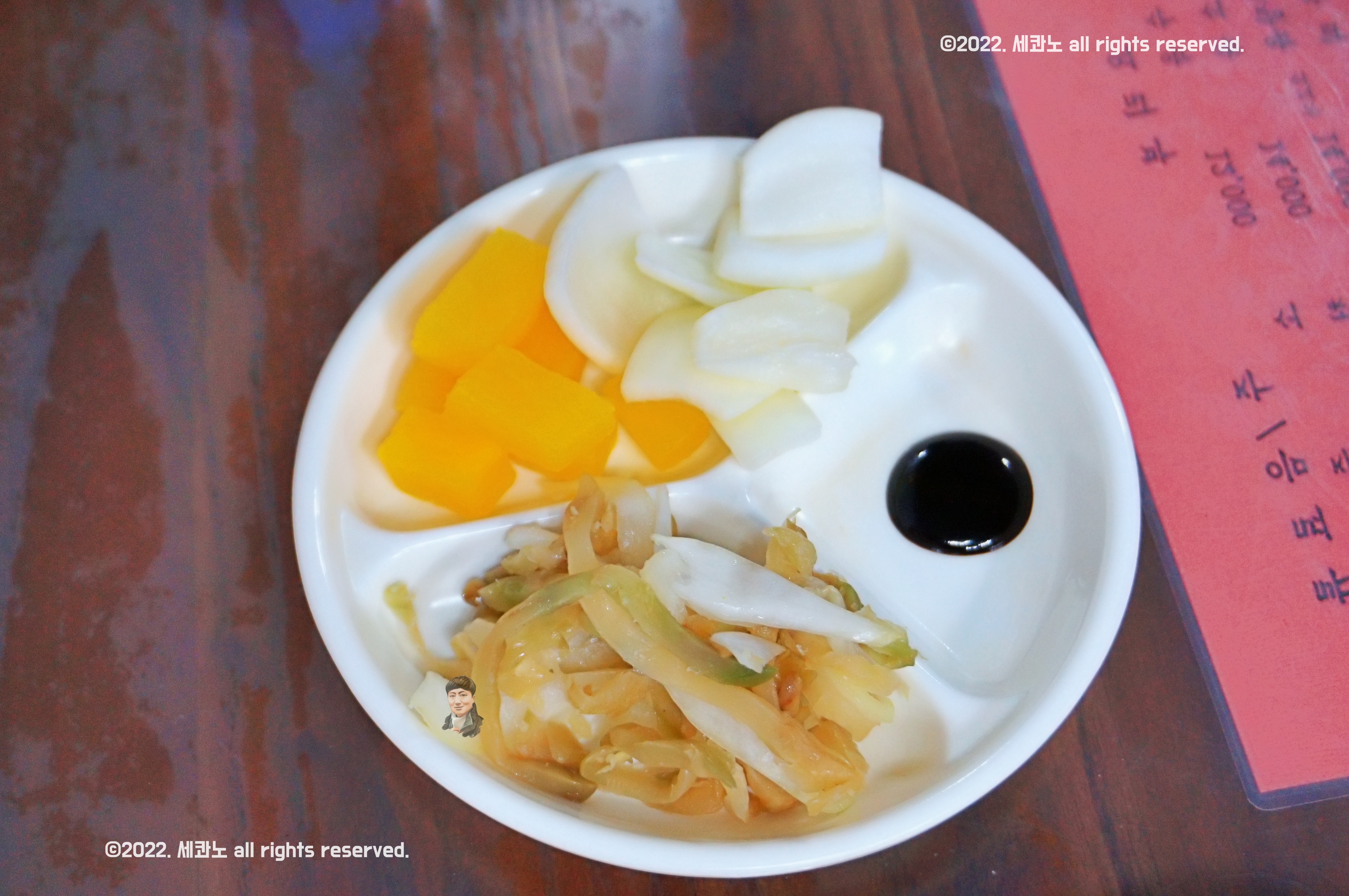 기본찬으로 단무지, 양파, 춘장과 함께 자차이가 나왔고