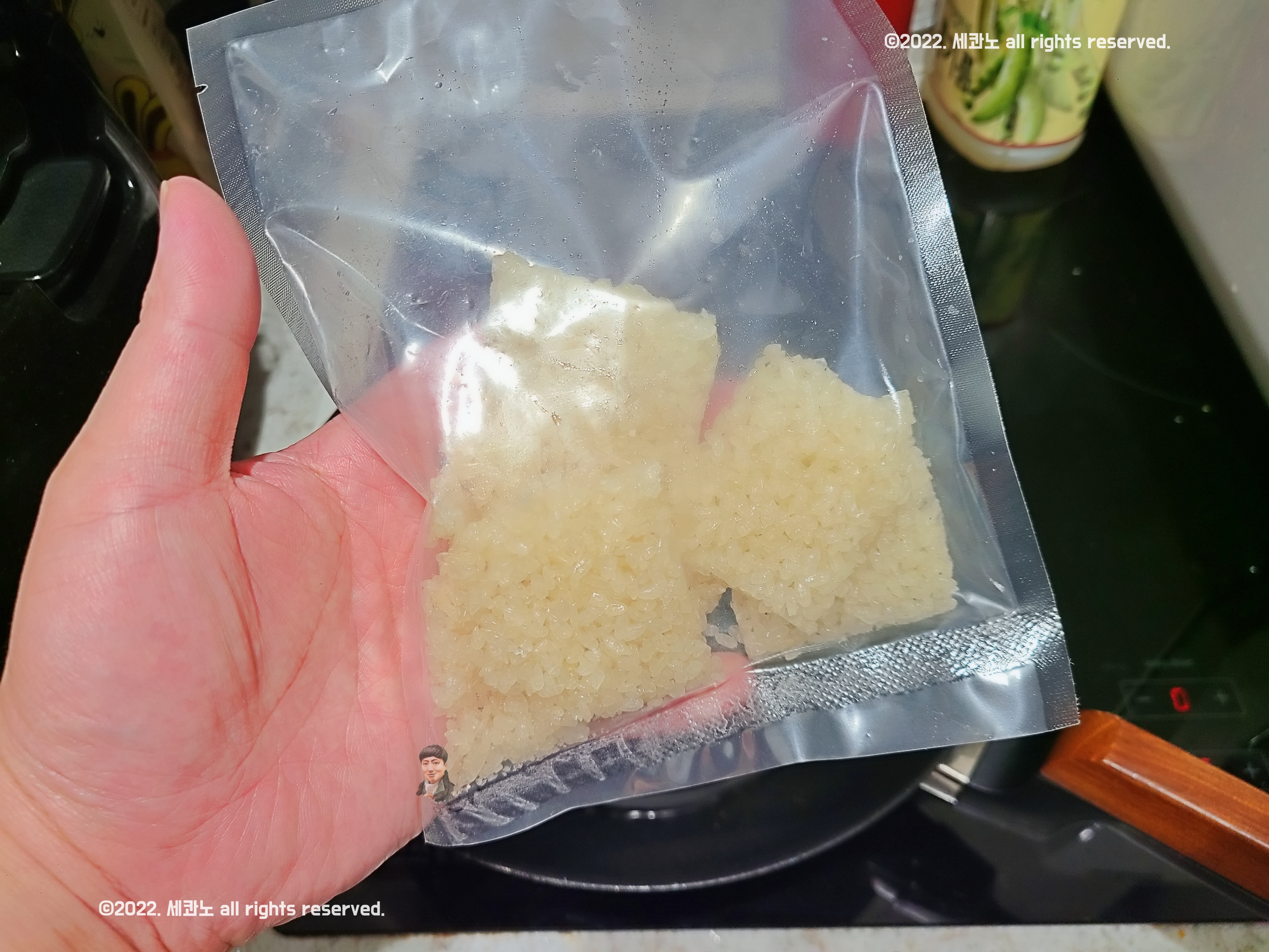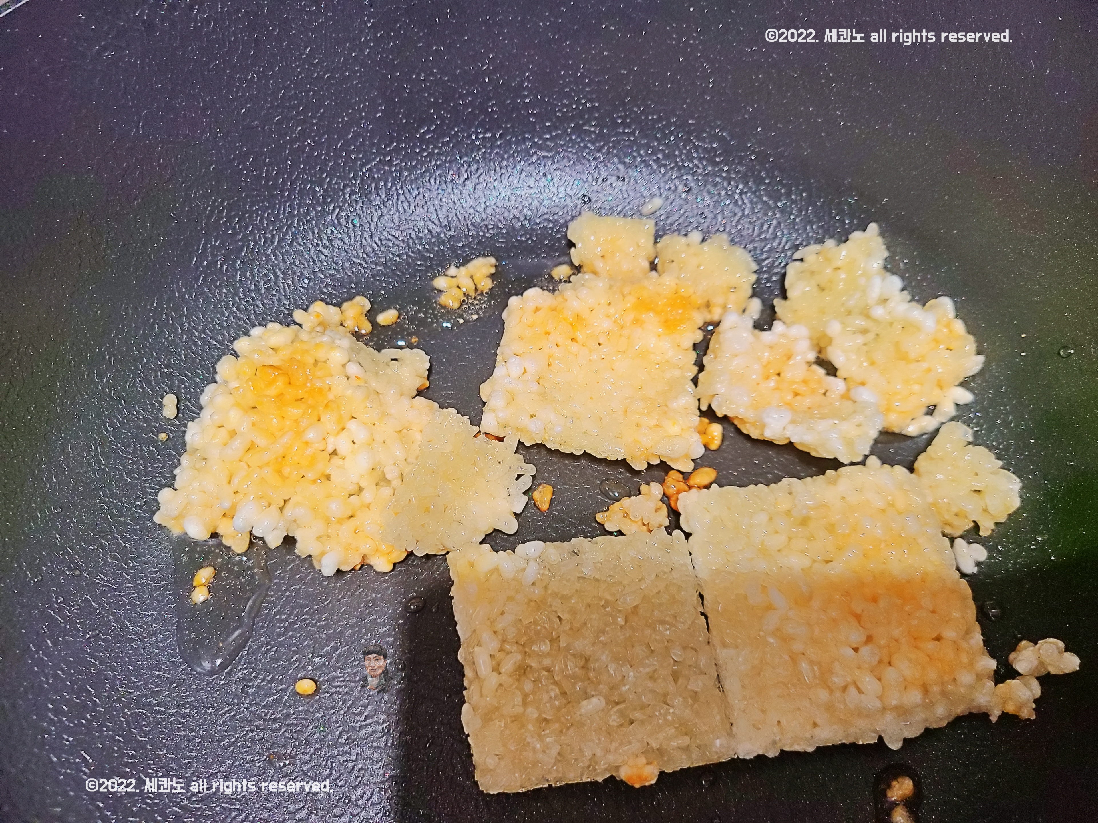 기름과 열을 받은 찹쌀 누룽지는 하얗게 부풀어 오르는 데