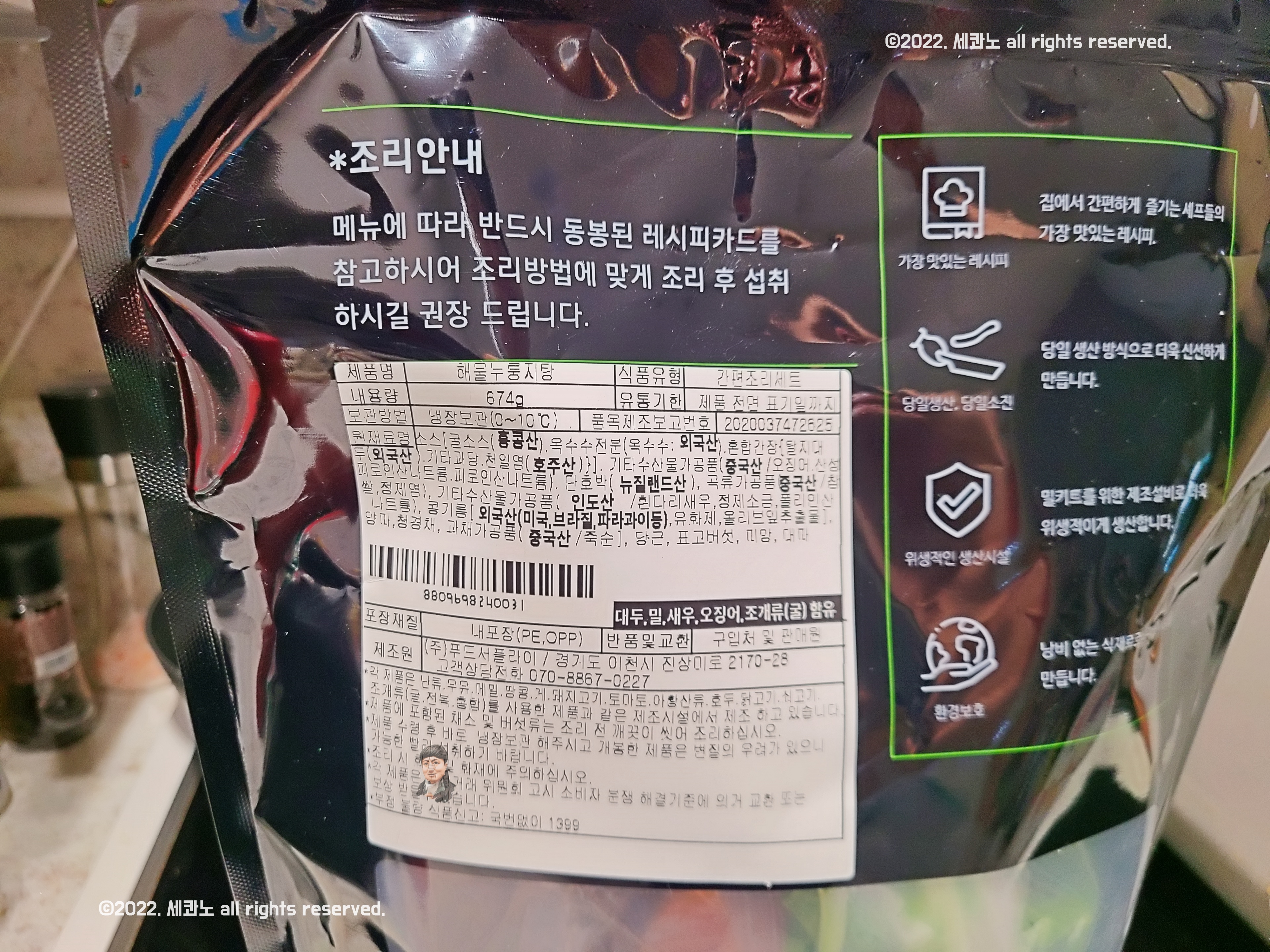 조리 전 밑준비로 해산물 세척 후, 물기를 제거하라고 되어 있다.