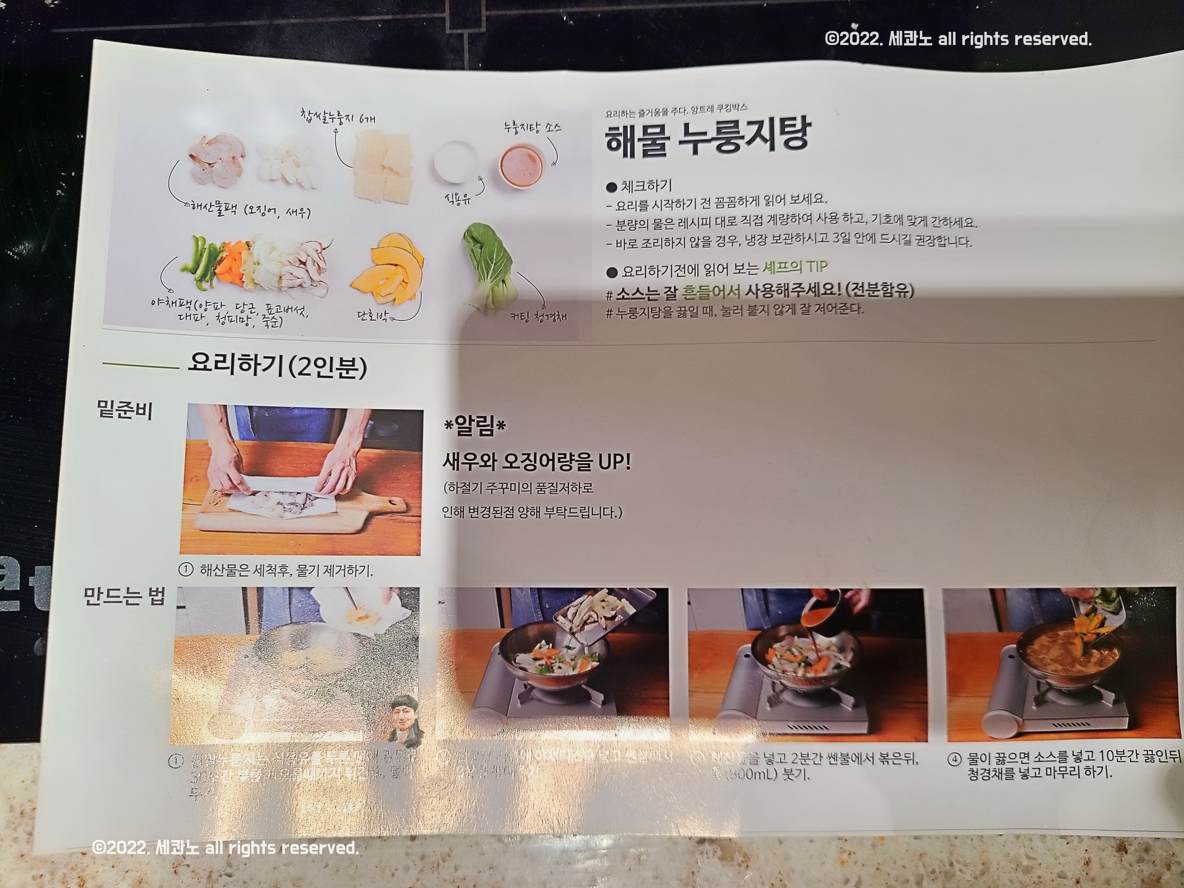 메뉴에 따라 반드시 동봉된 레시피 카드를 참고하여