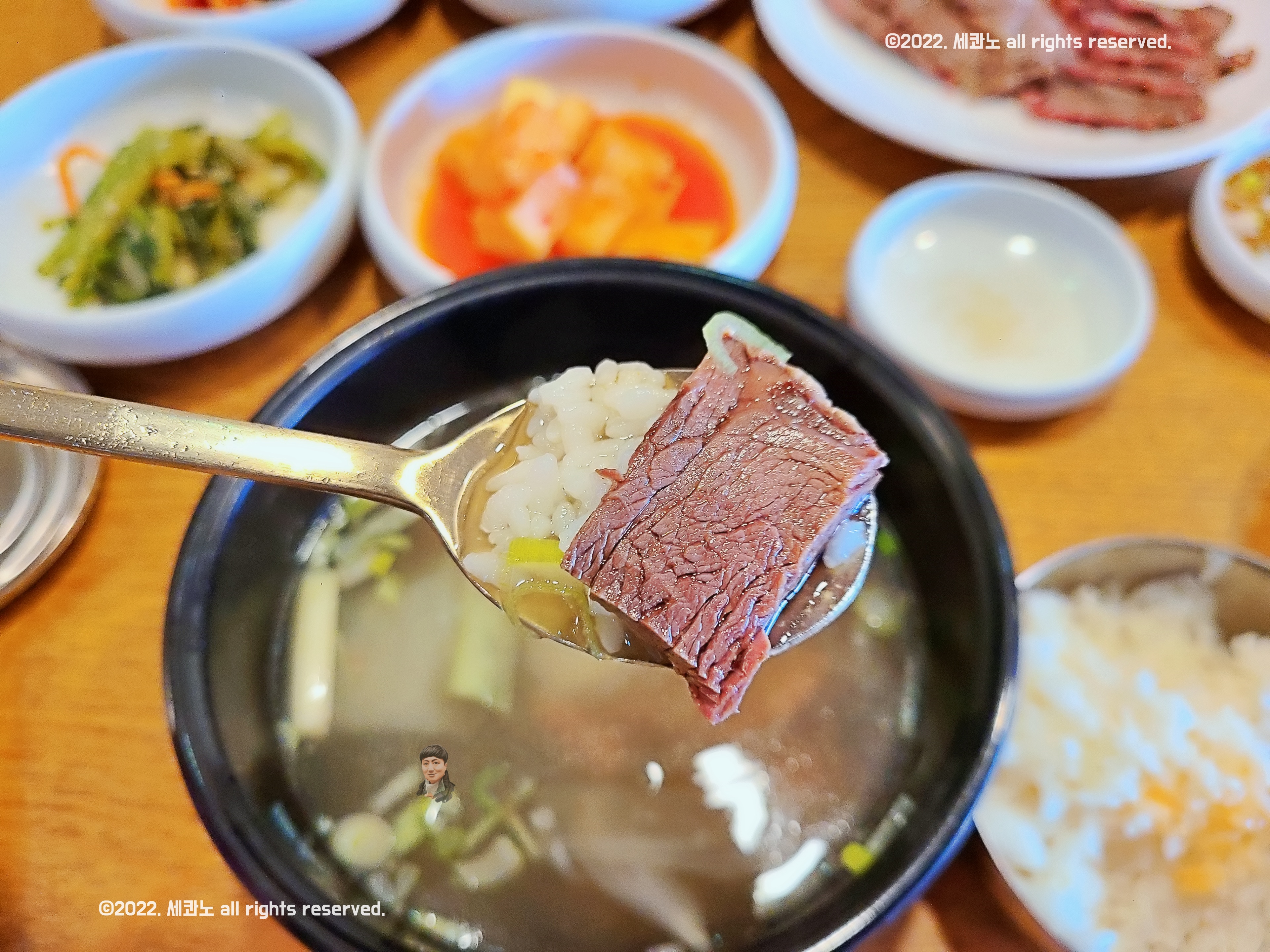 녹진한 한우 육수에 감칠맛과 담백함이 어우러져 밥을 부르게 된다는