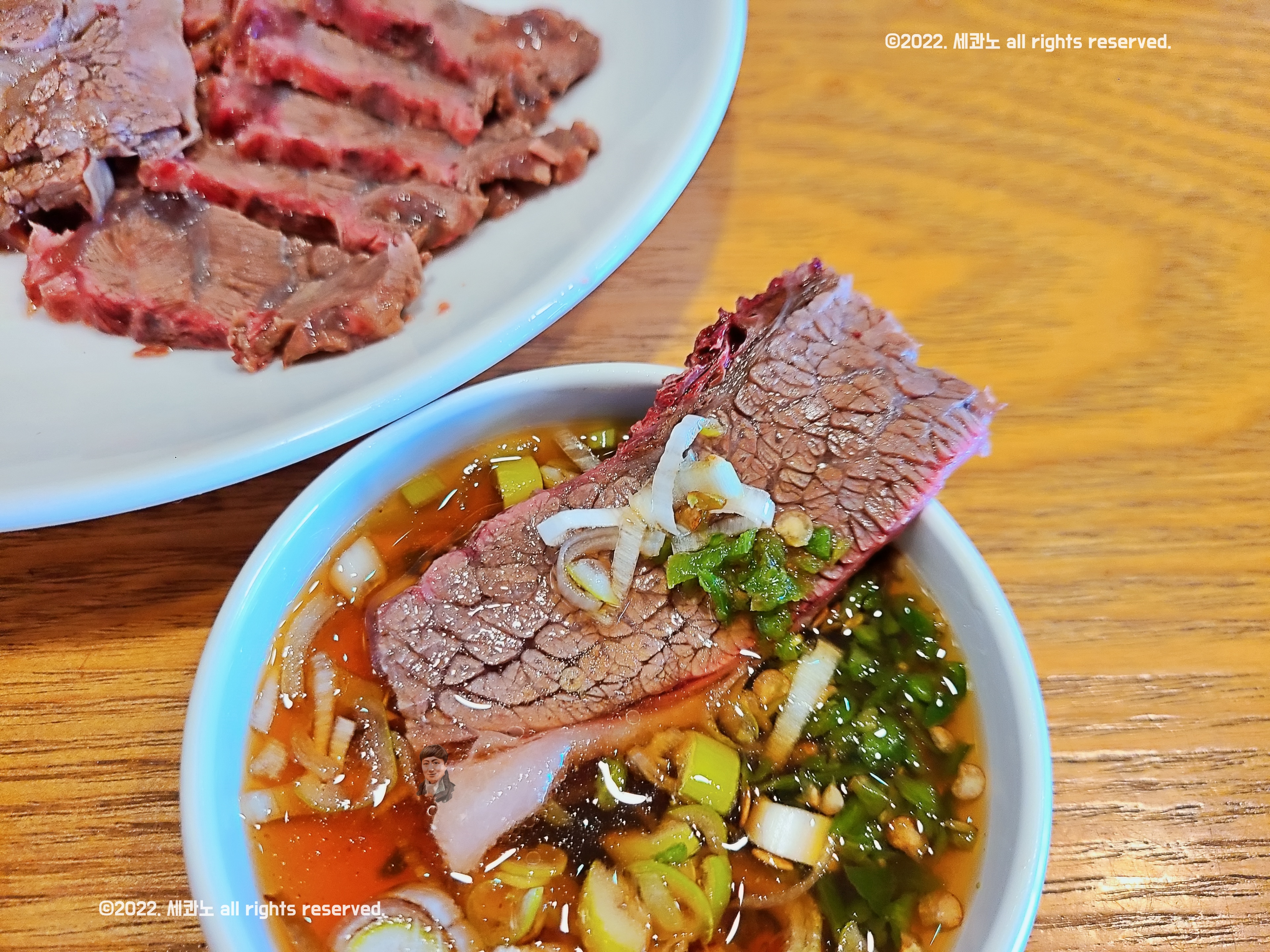 등급 높은 소고기를 특별한 비법으로 삶아 부드러운 식감은 물론