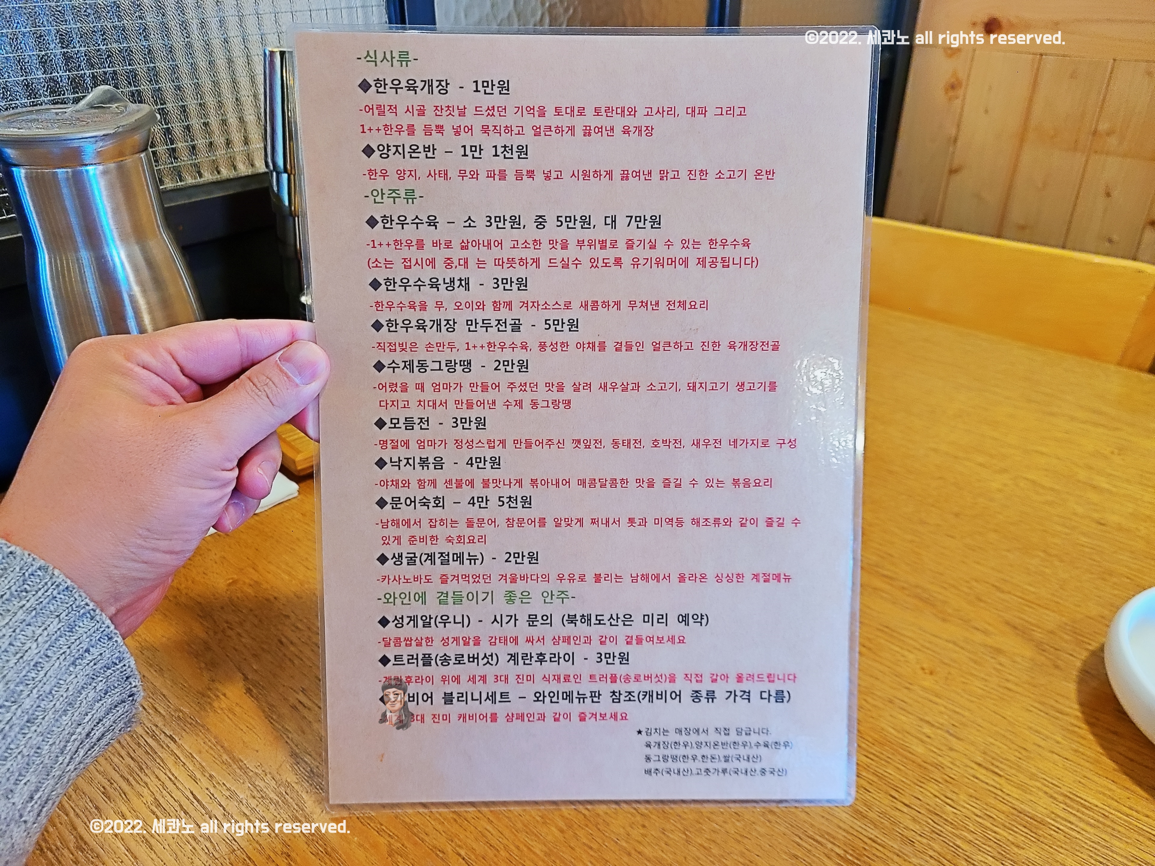 한우수육 소 30,000원, 중 50,000원, 대 70,000원