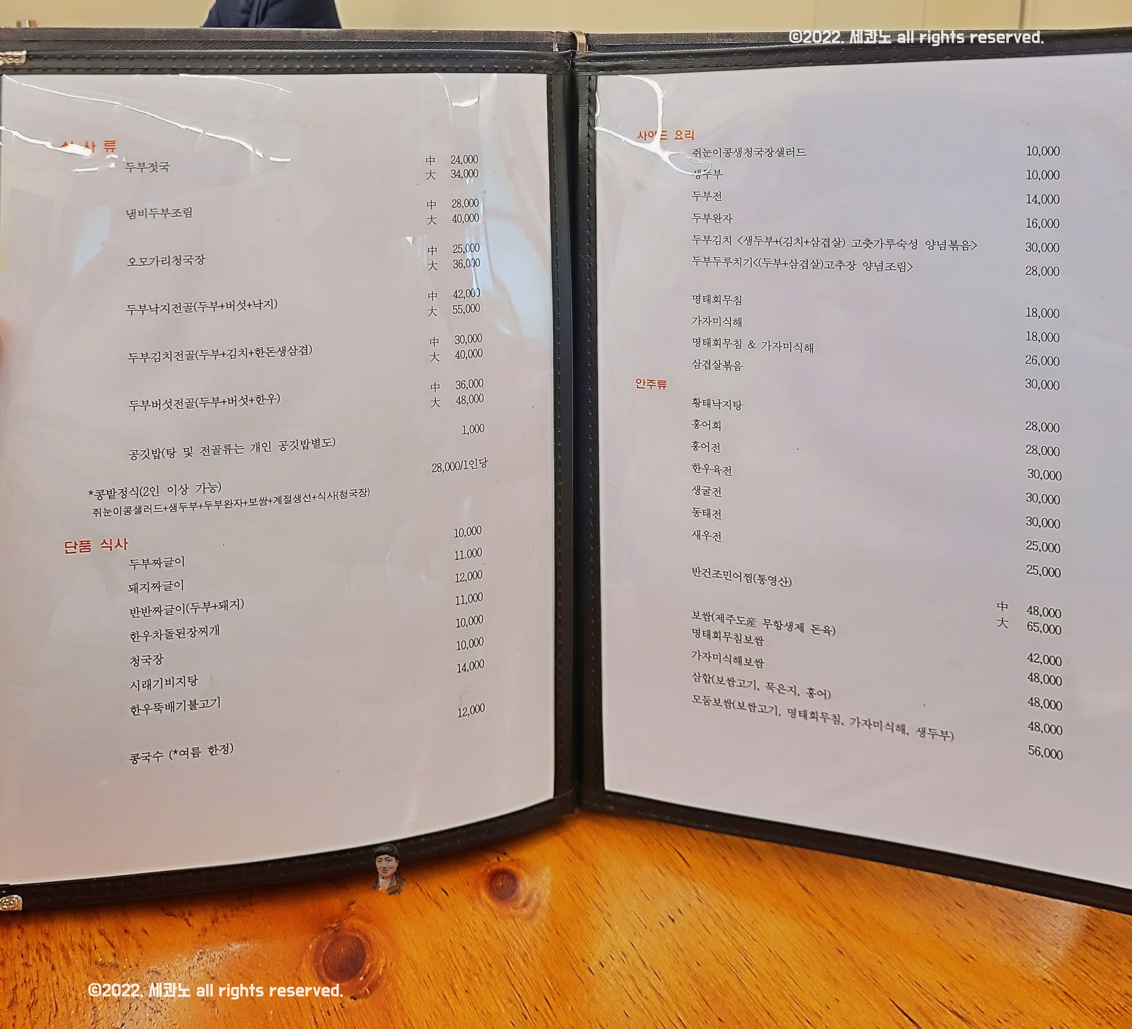 줄서는식당 두부젓국 중 24,000원. 대 34,000원